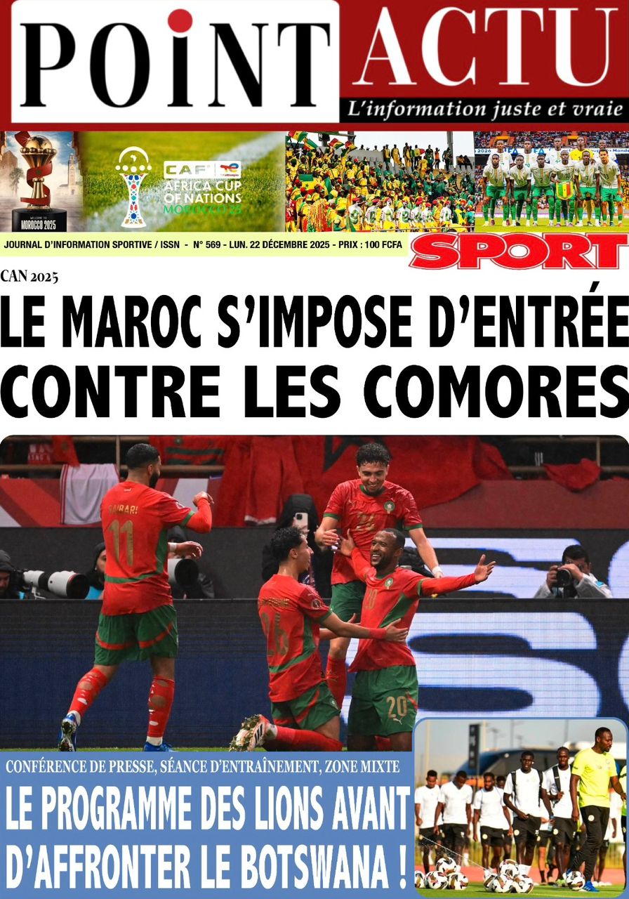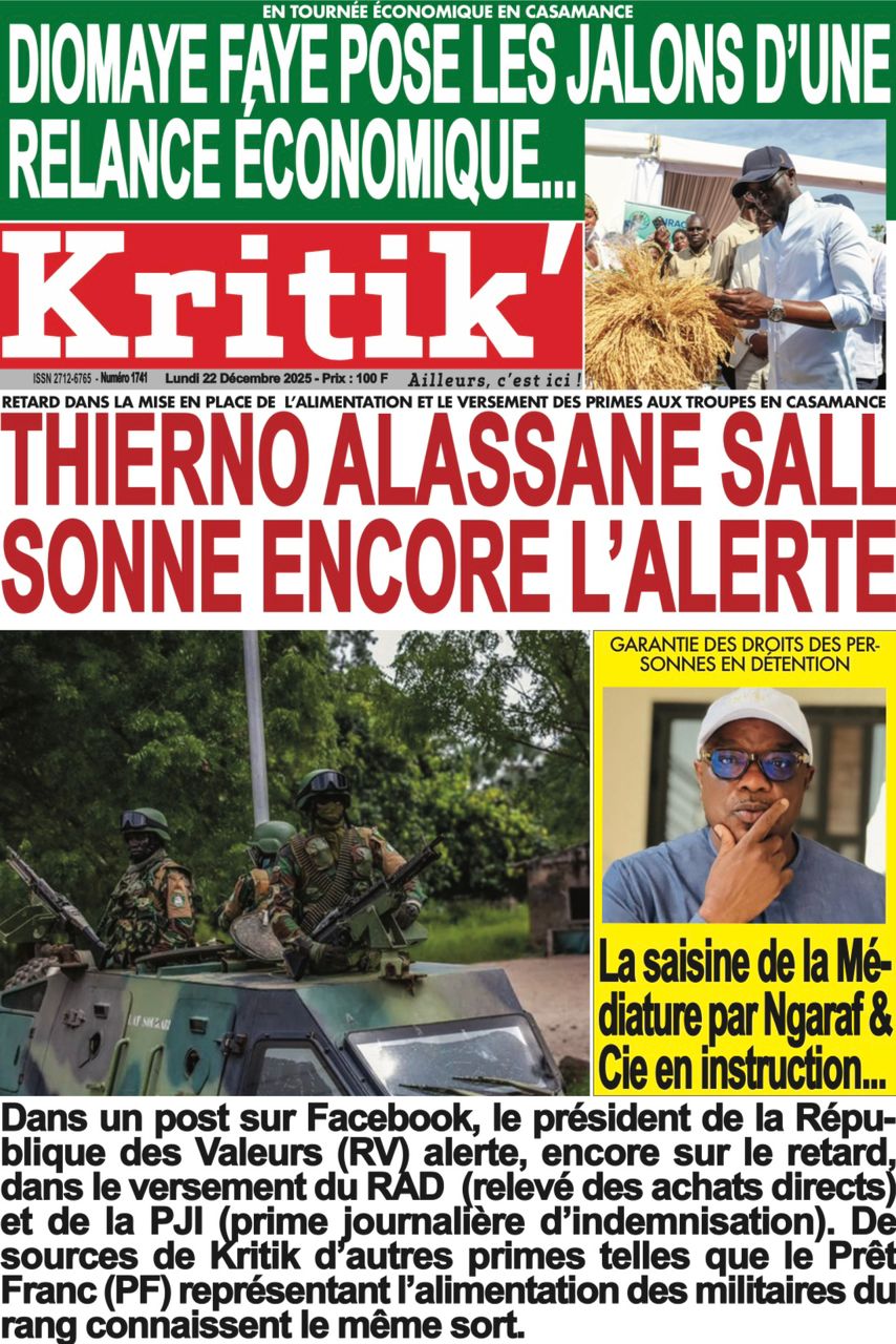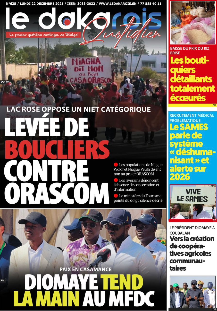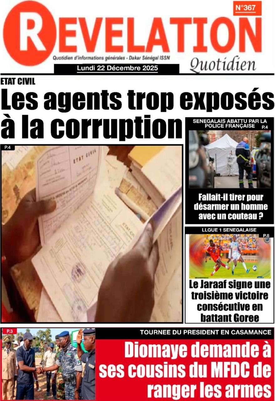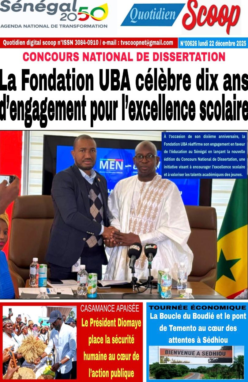 Les journaux sénégalais du lundi 22 décembre 2025 : les sujets phares sont la tournée économique du Président Bassirou Diomaye Faye en Casamance, le début de la CAN 2025 et des drames survenus, dans le pays et en France.