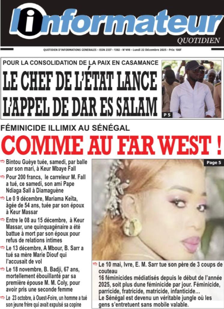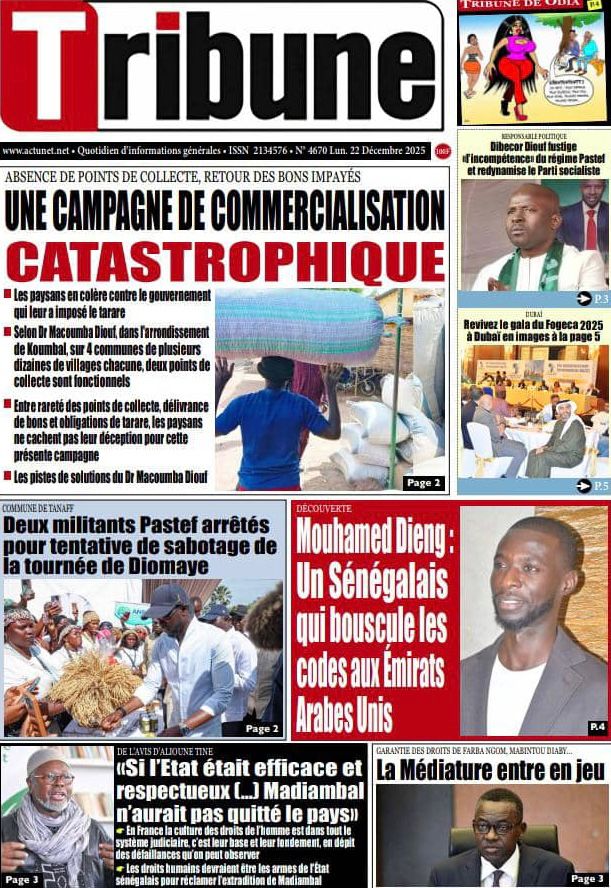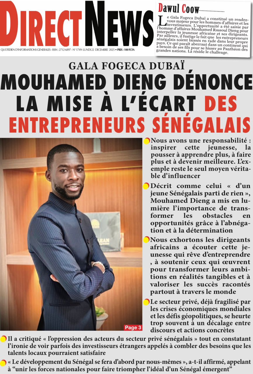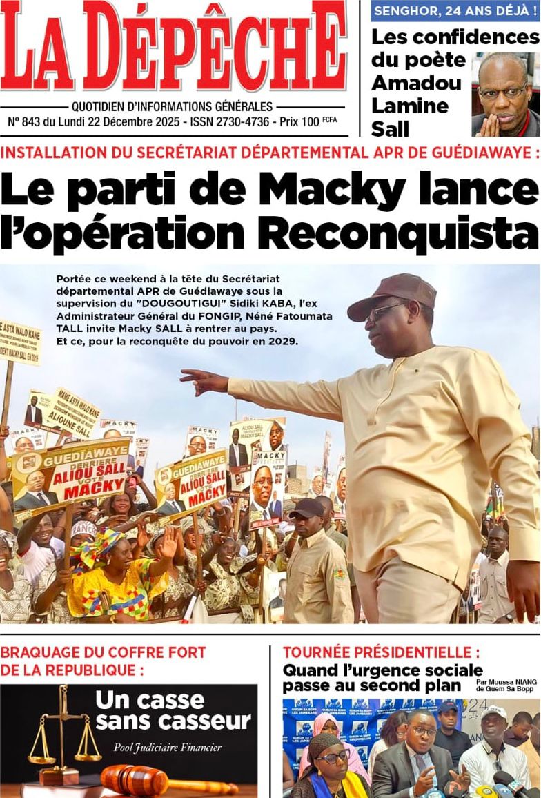Photos. Les journaux sénégalais du lundi 22 décembre 2025