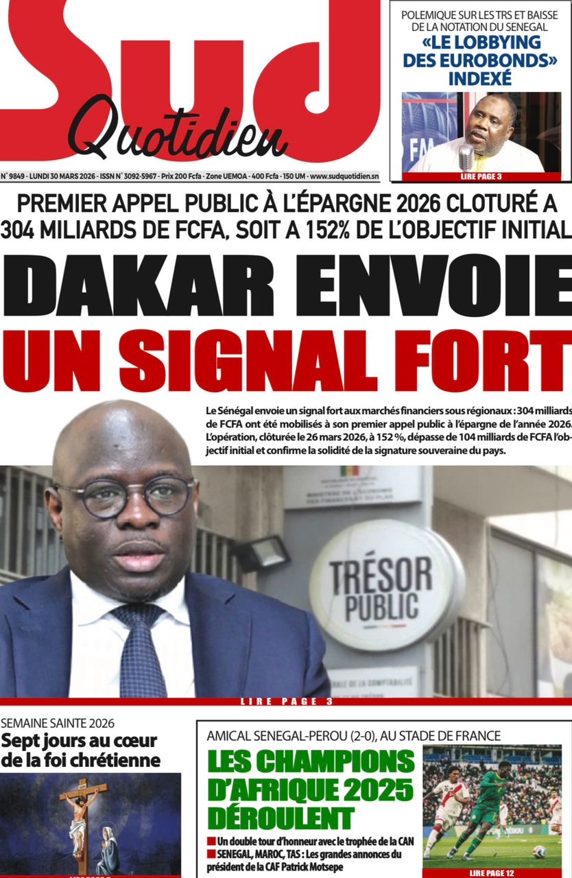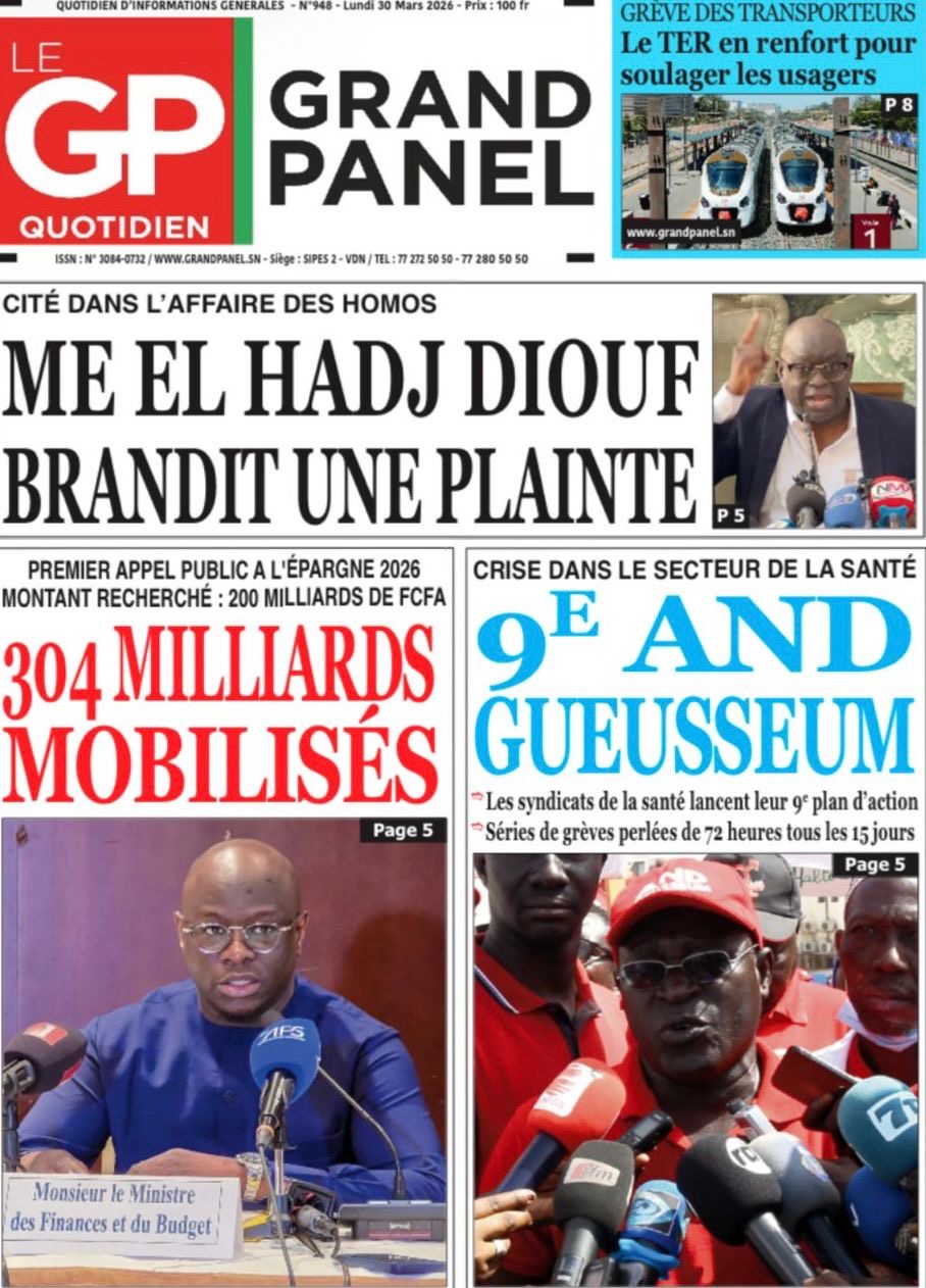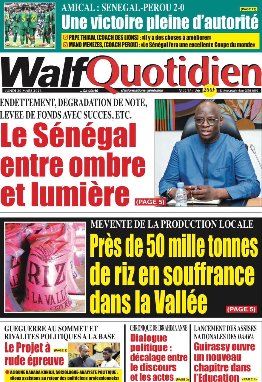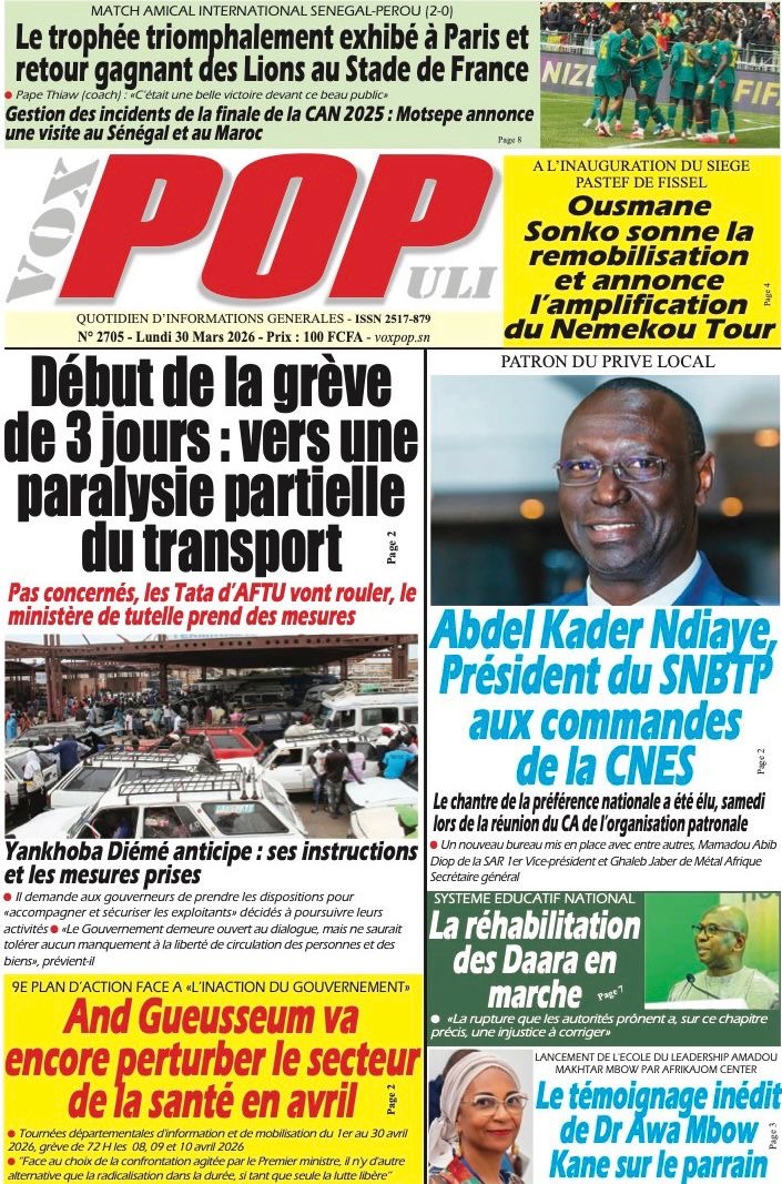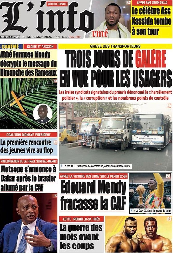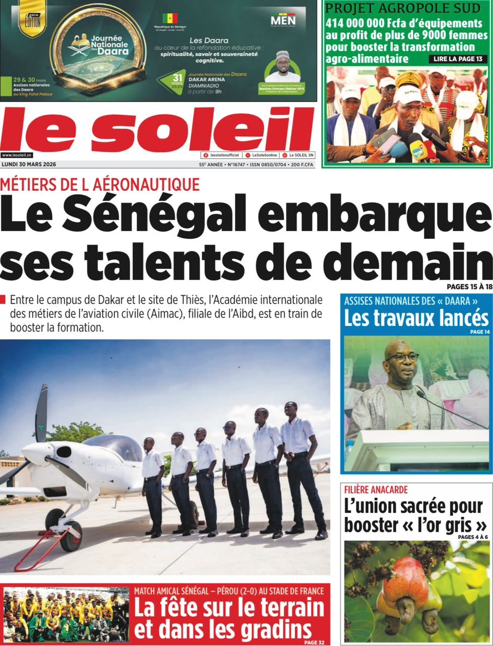 Les journaux sénégalais du lundi 30 mars 2026 Lire UNES du Sénégal