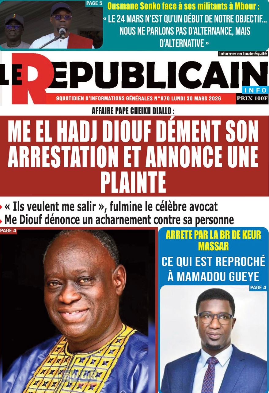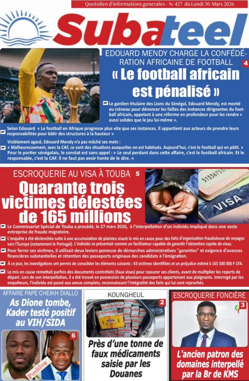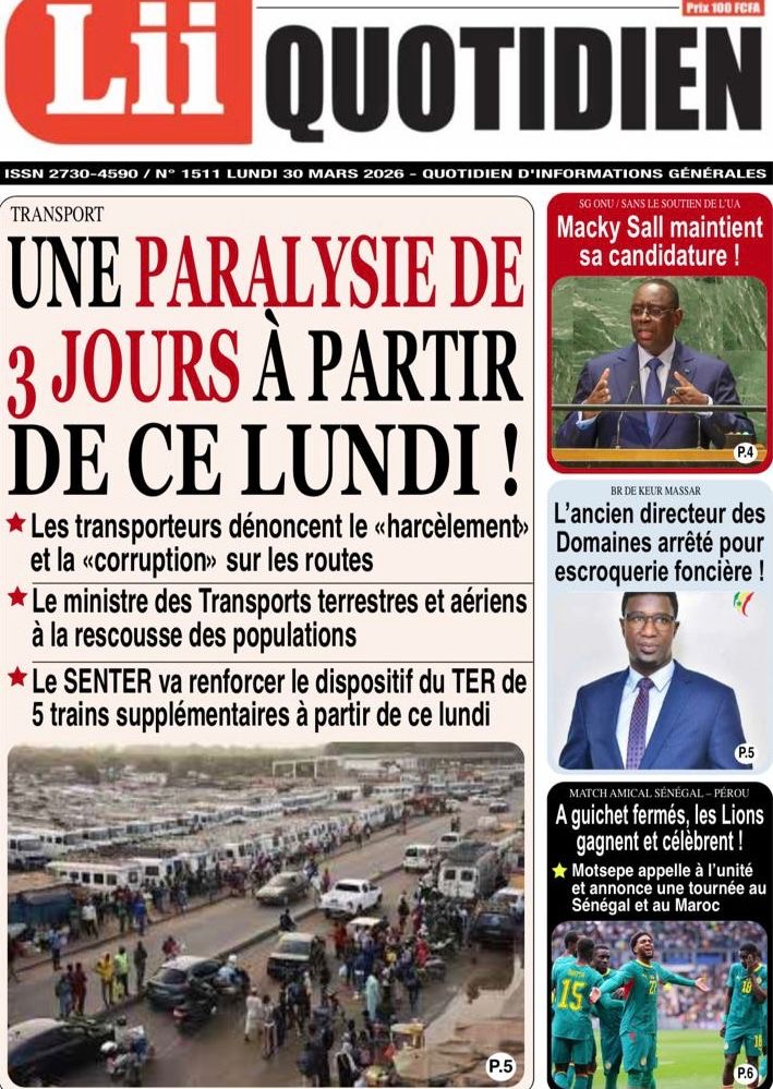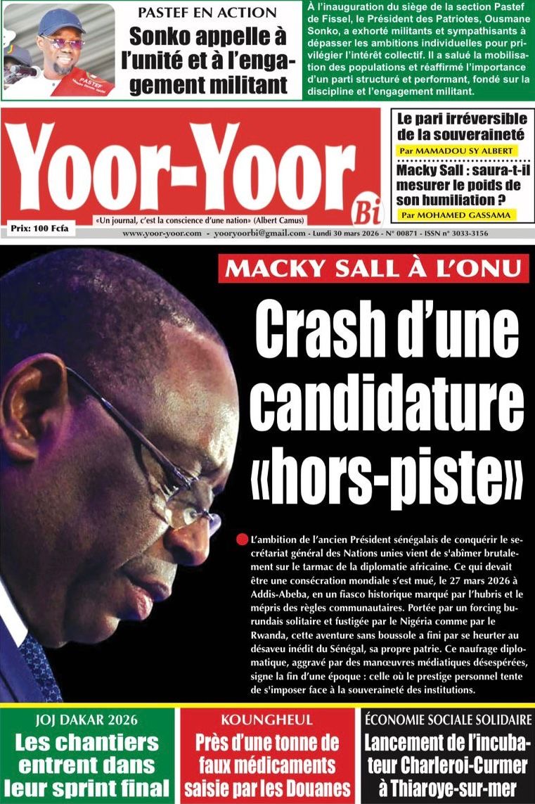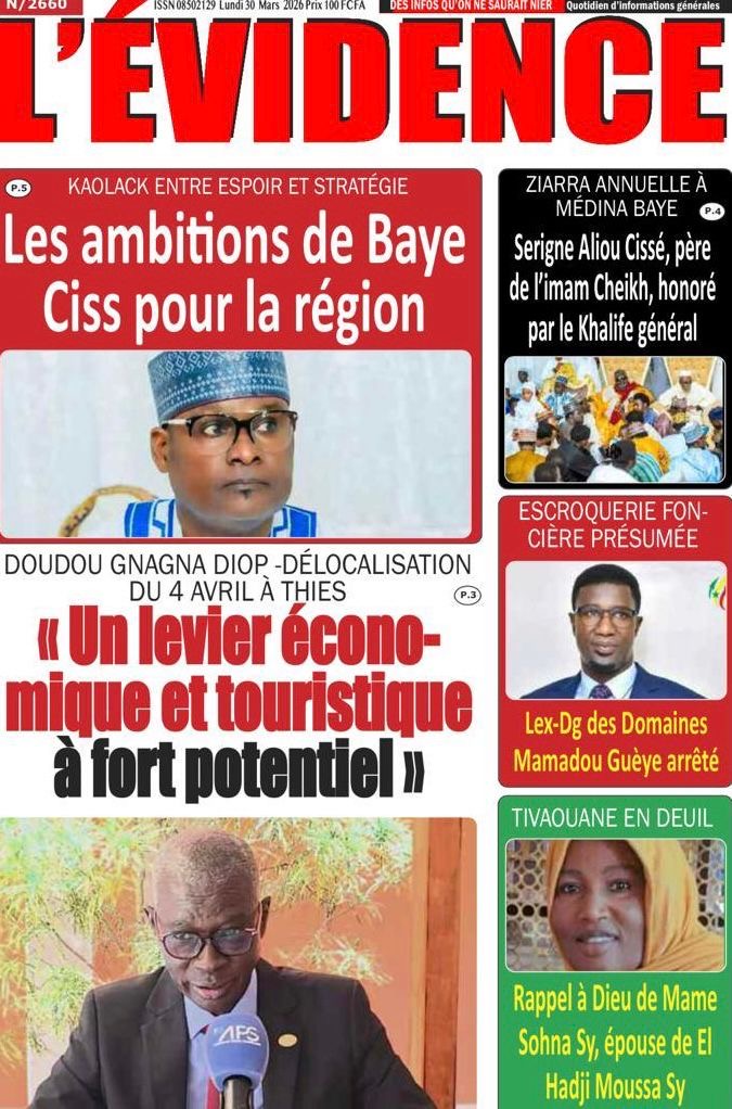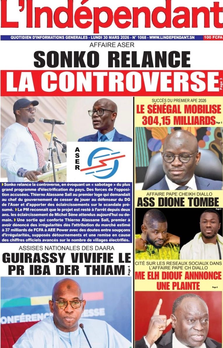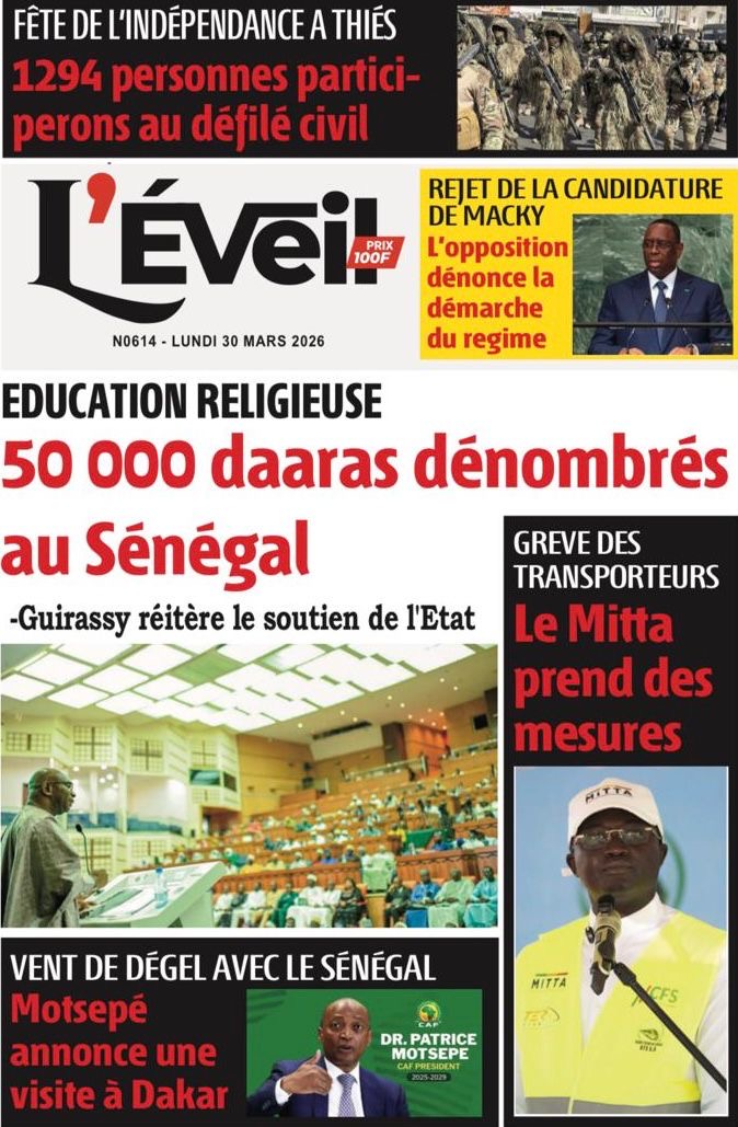 Les journaux sénégalais du lundi 30 mars 2026 Lire UNES du Sénégal
