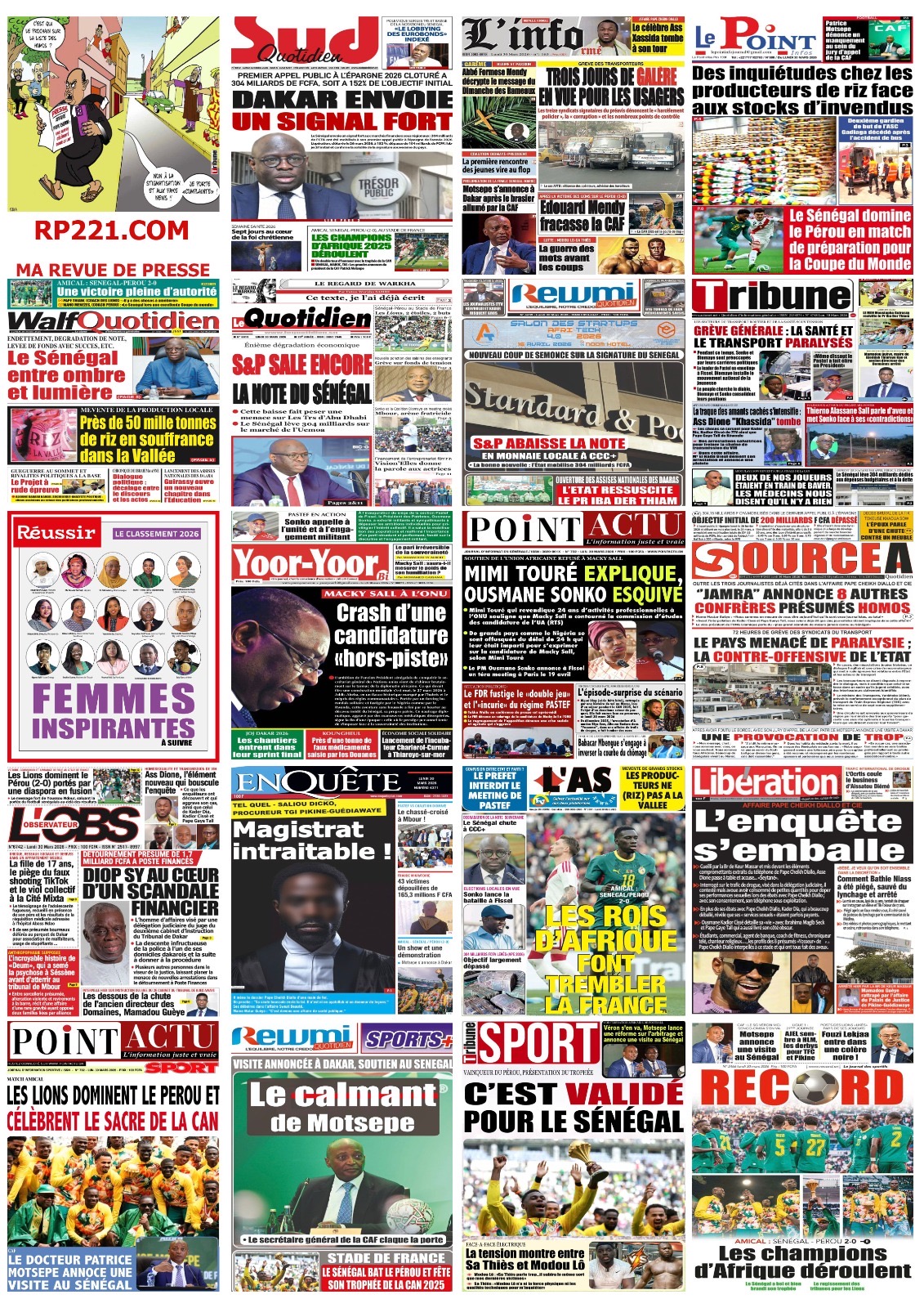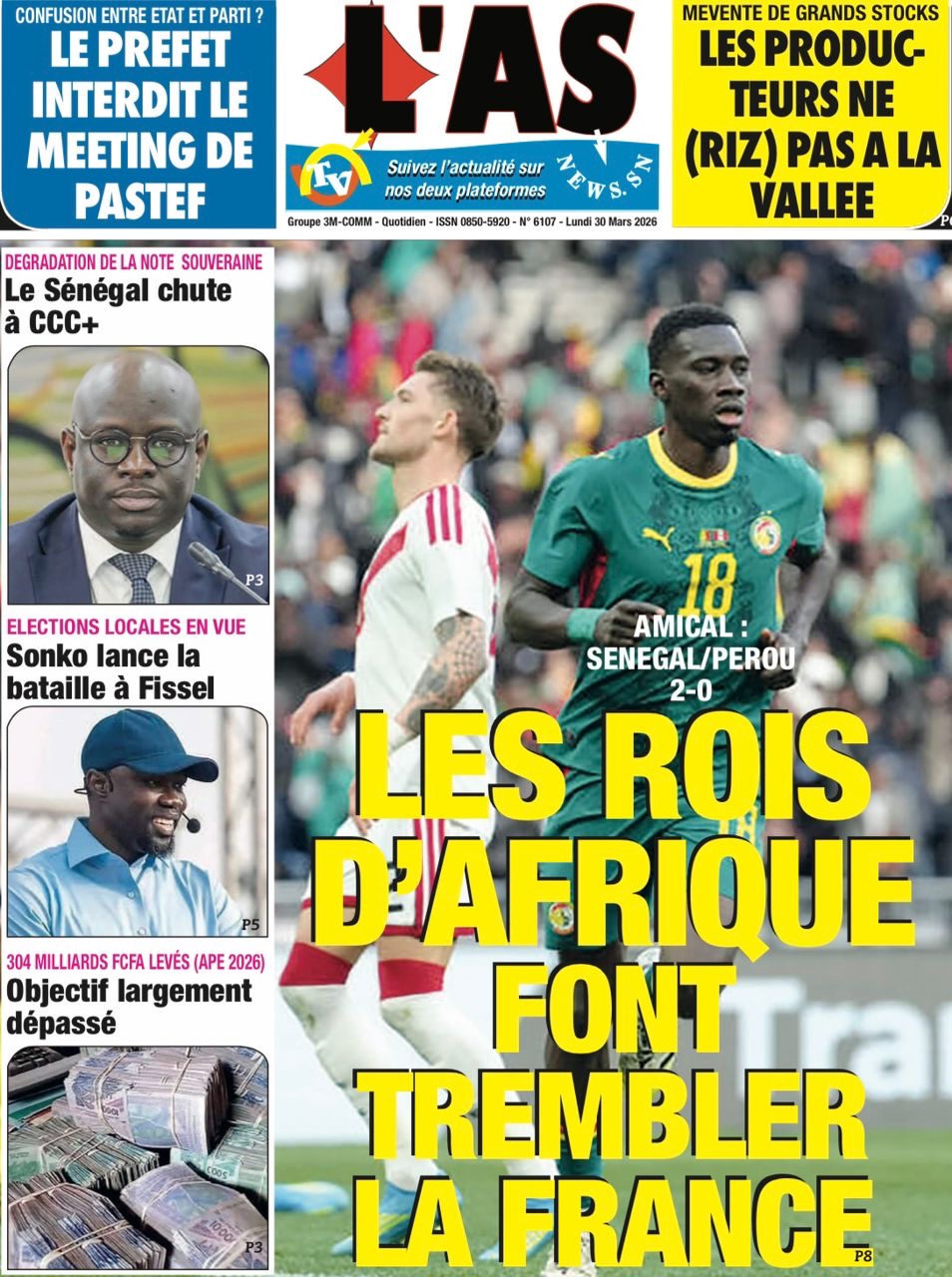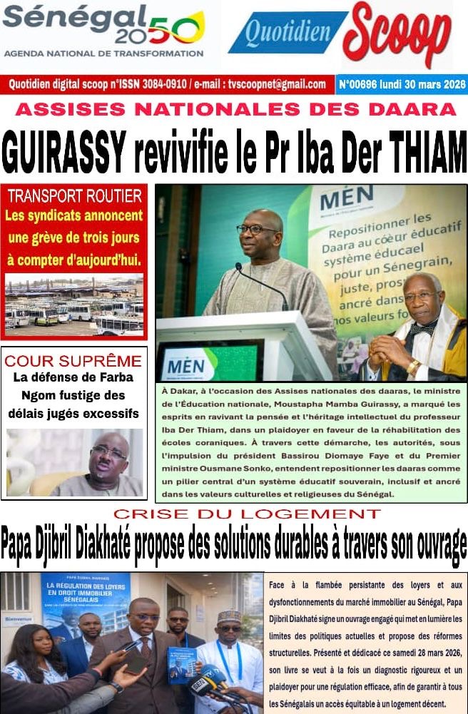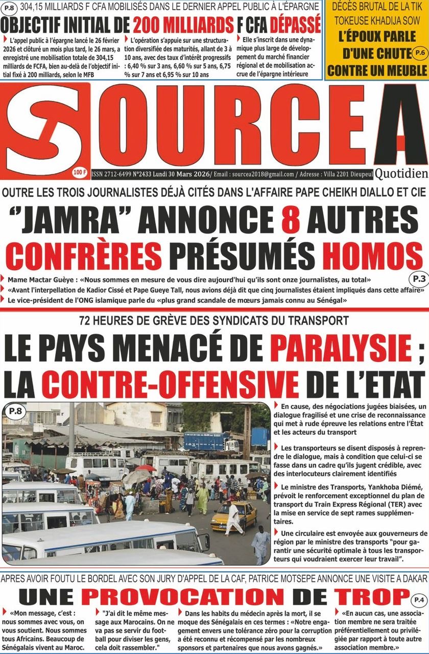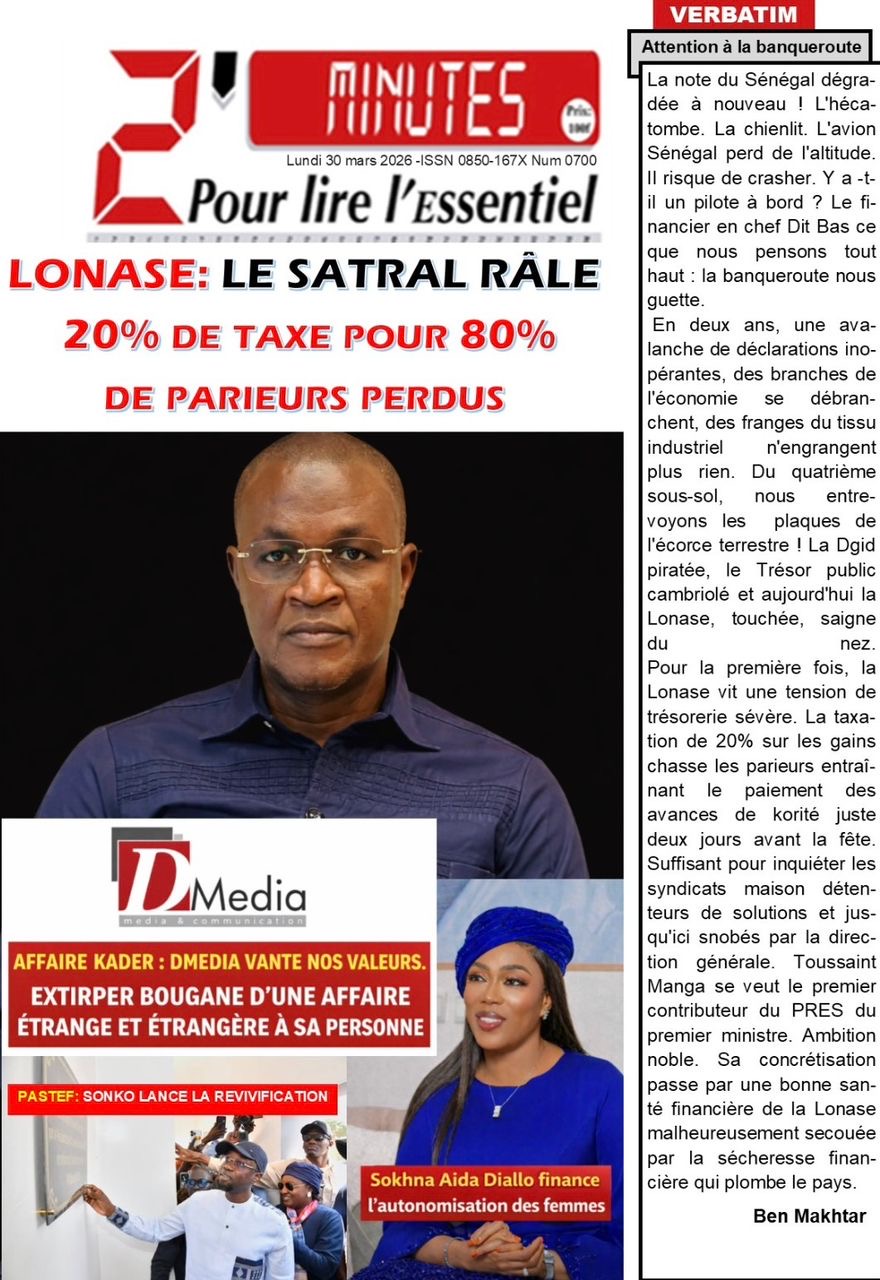 Les journaux sénégalais du lundi 30 mars 2026 Lire UNES du Sénégal