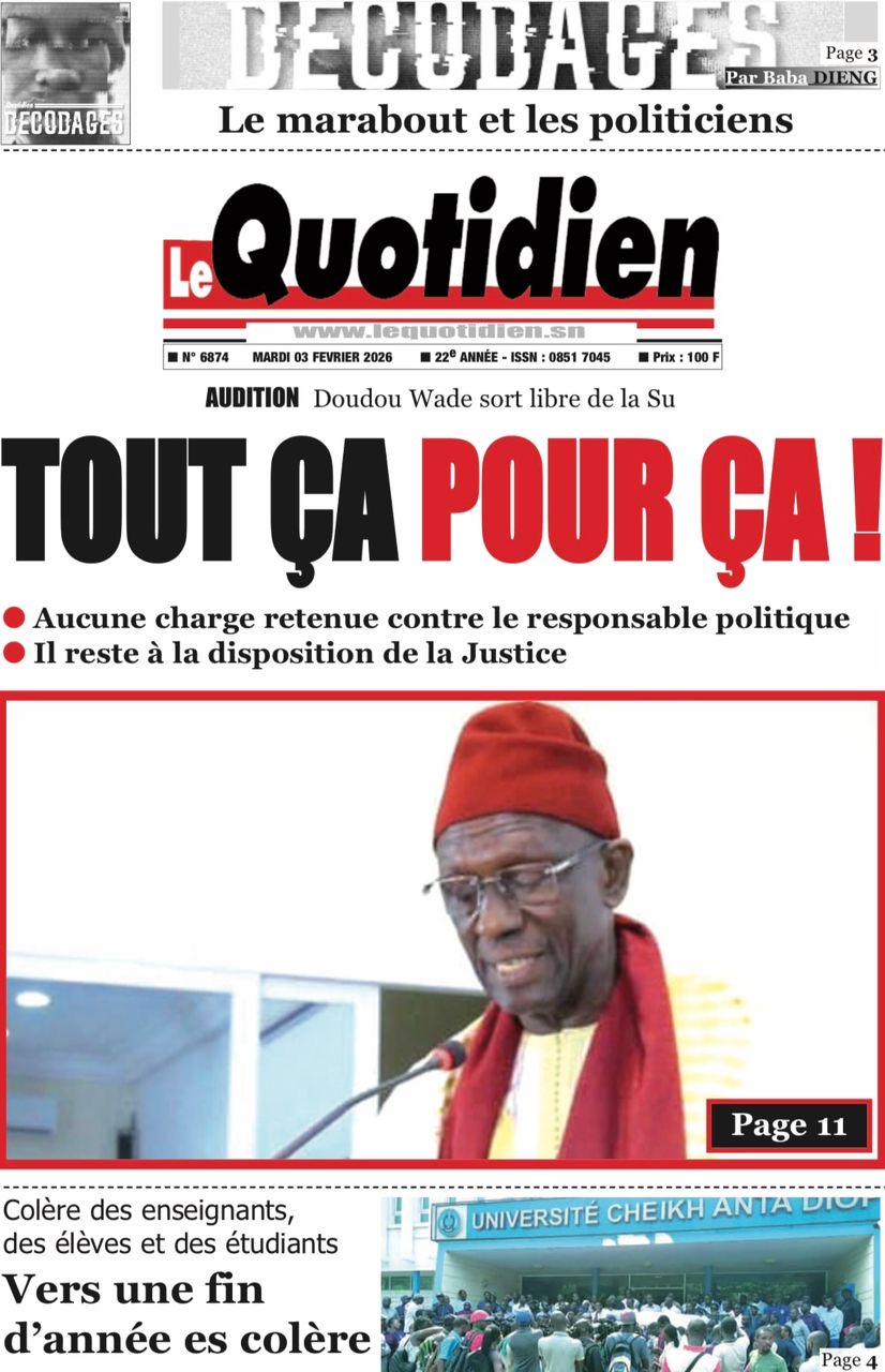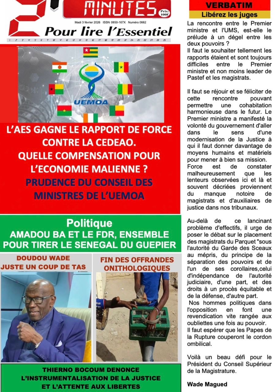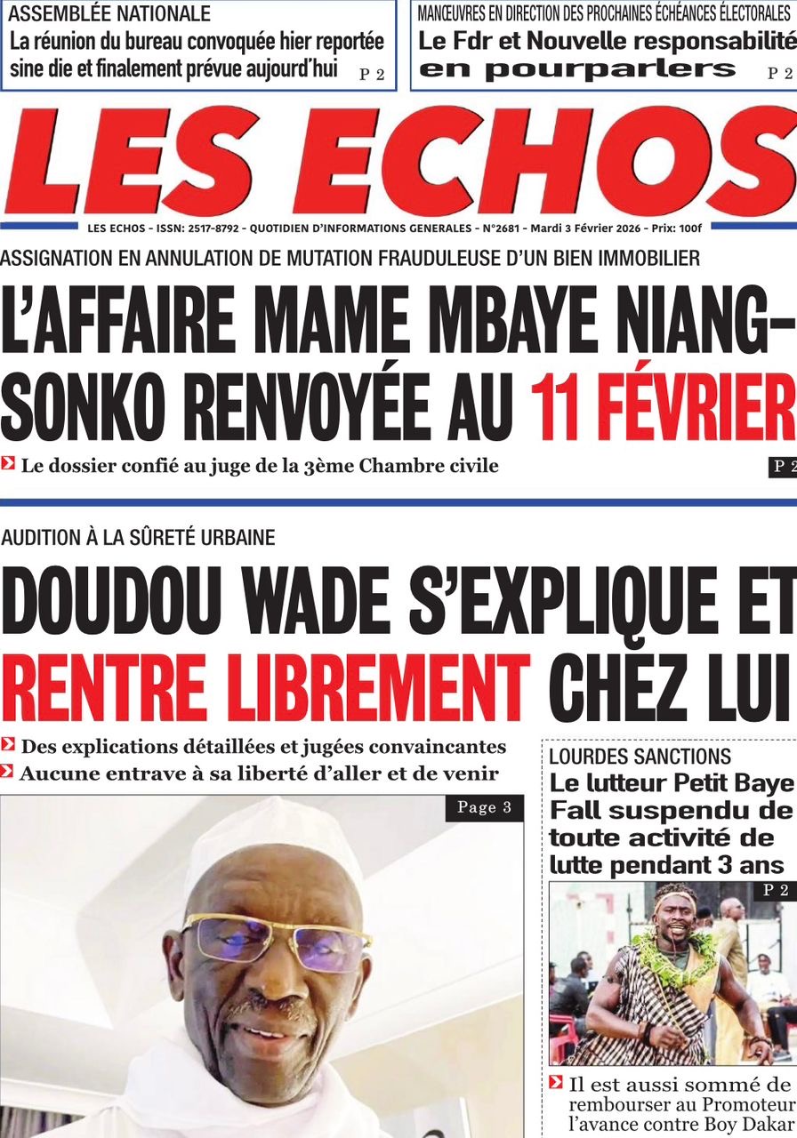 Photos. Les journaux sénégalais du mardi 03 février 2026