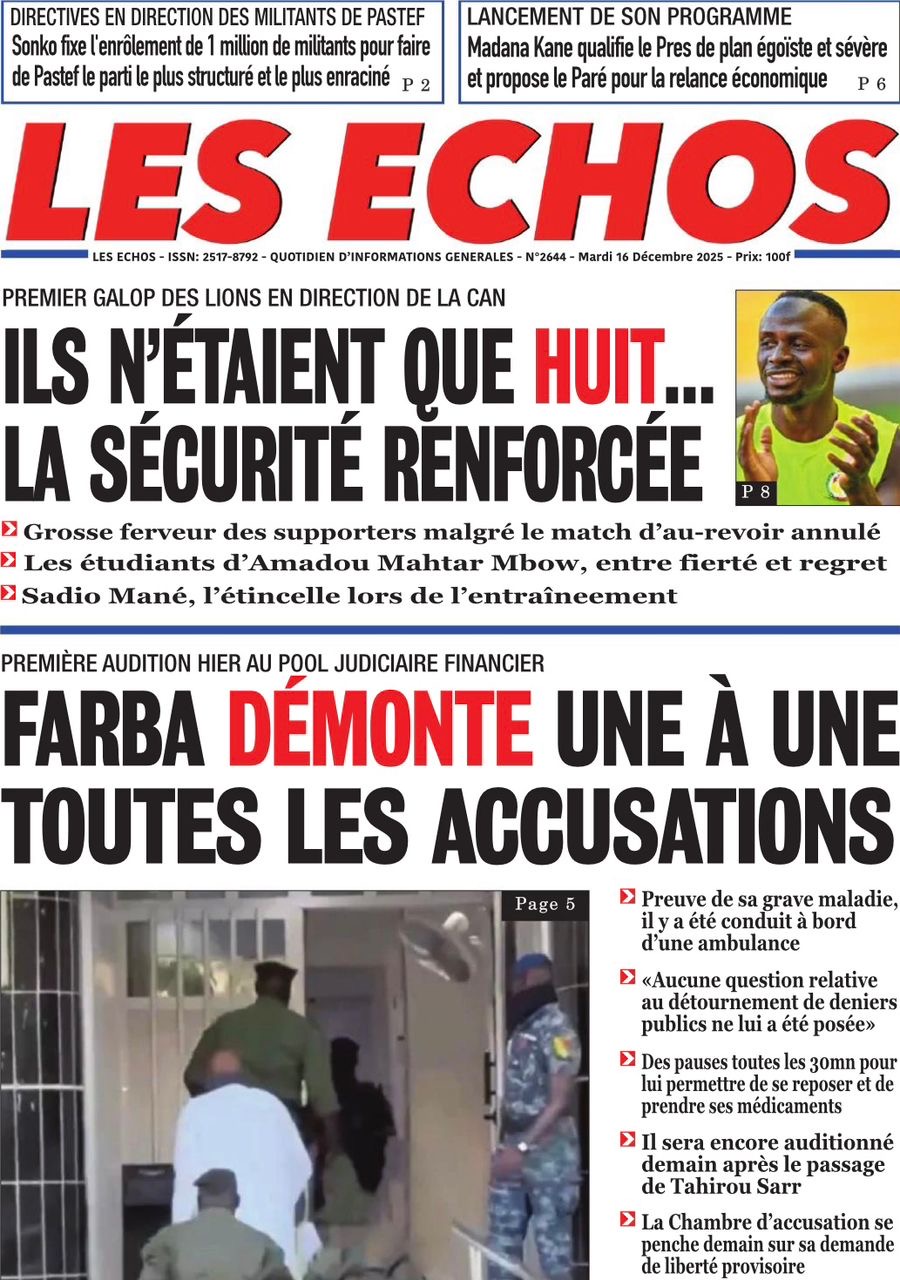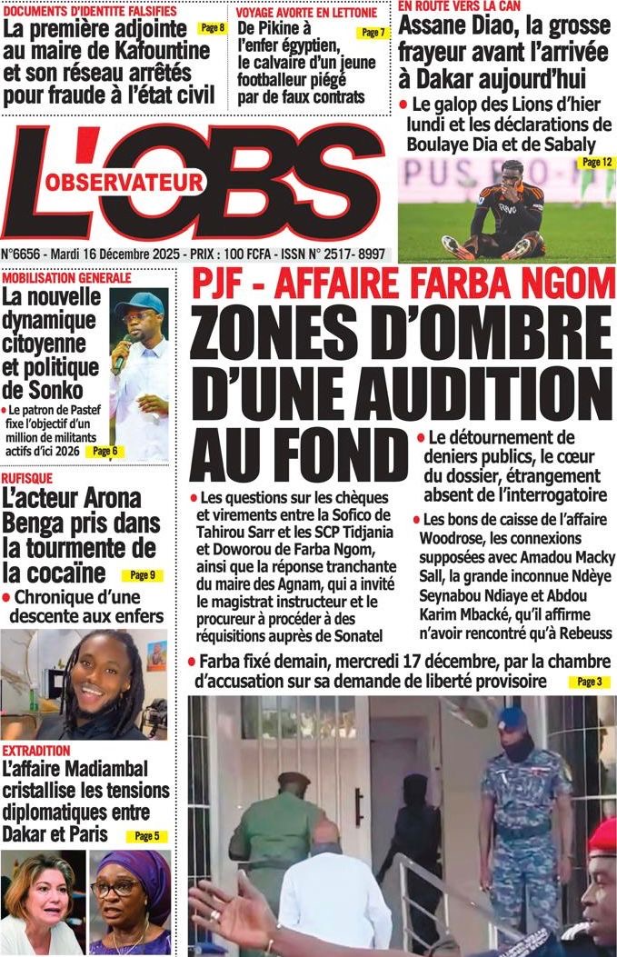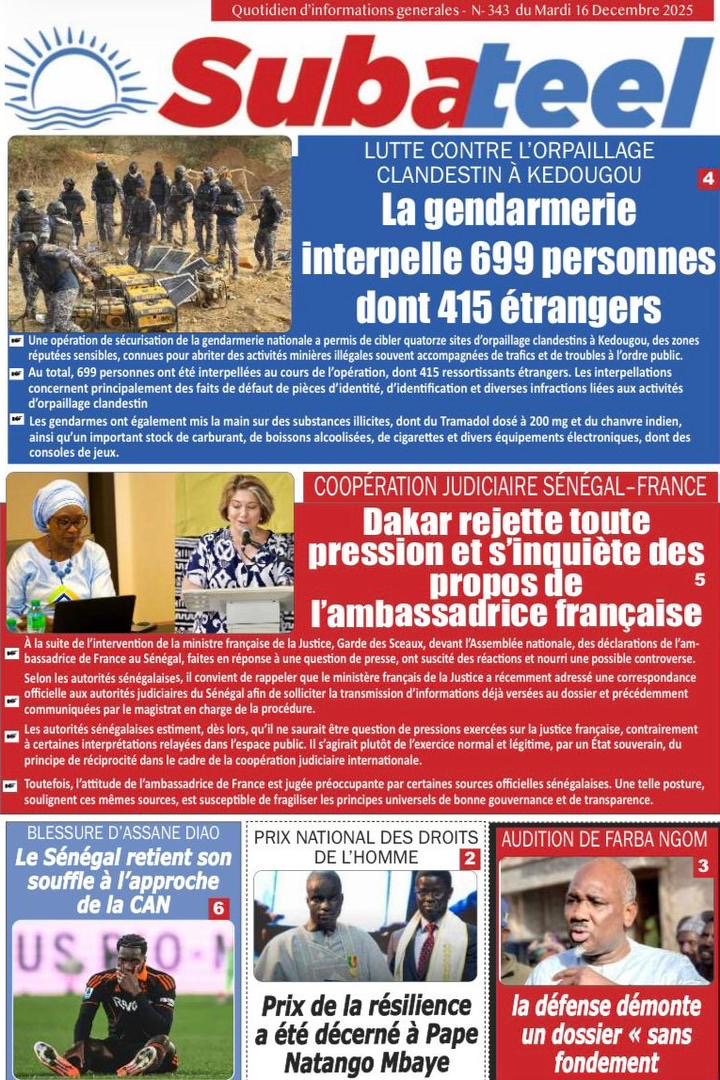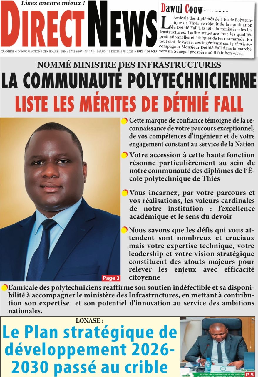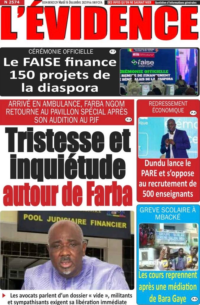 Les journaux sénégalais du mardi 16 décembre 2025 sont plus nombreux que d’habitude, du fait de la réapparition de plusieurs titres après la décision de la Cour Suprême défavorable au processus d’identification initié par le ministère de la Communication.