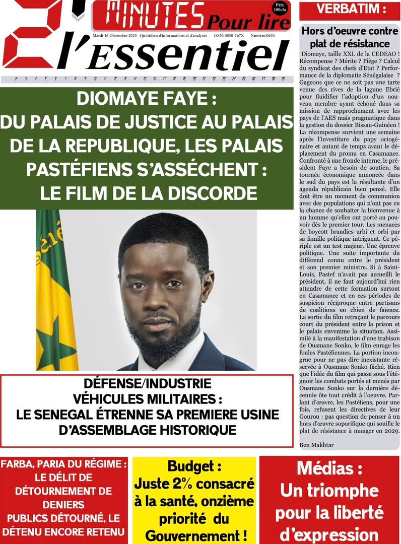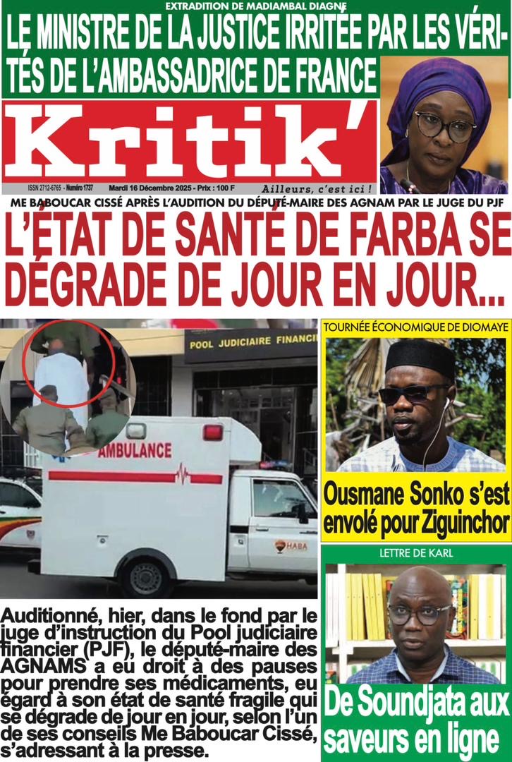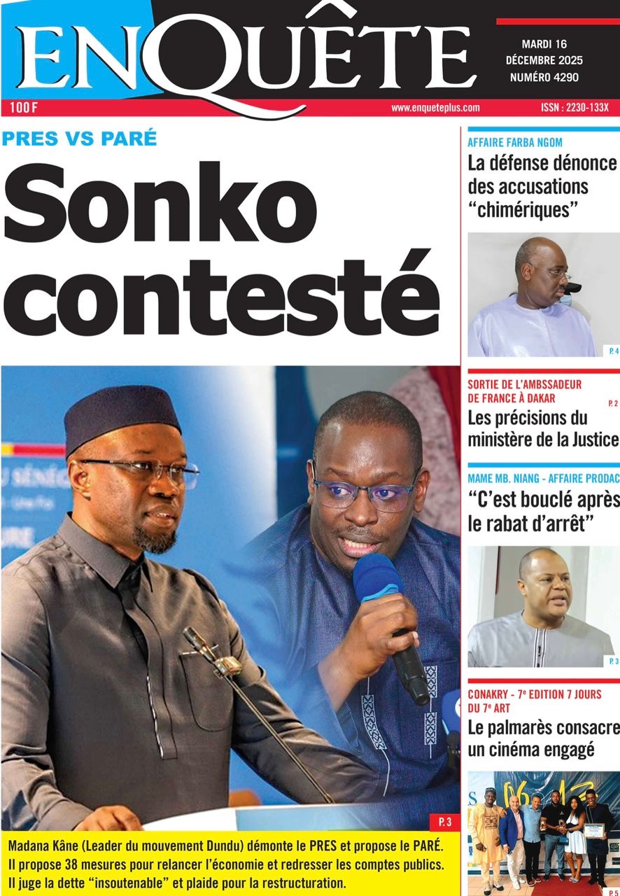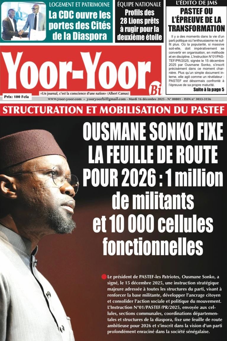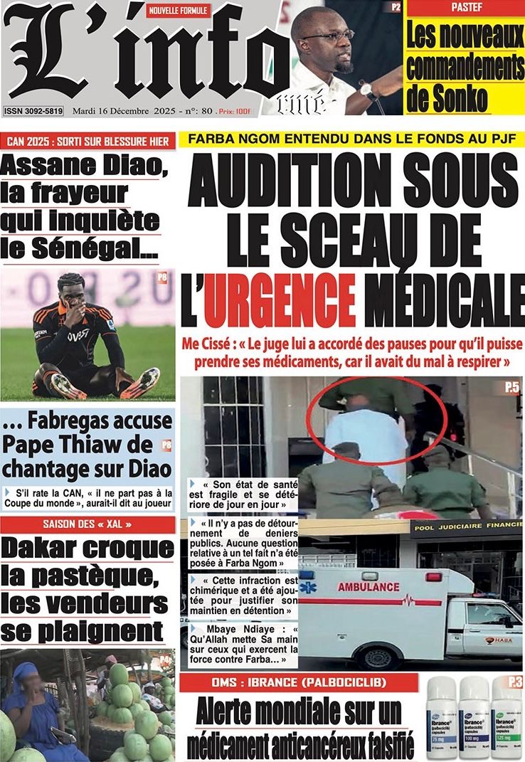 Les journaux sénégalais du mardi 16 décembre 2025 sont plus nombreux que d’habitude, du fait de la réapparition de plusieurs titres après la décision de la Cour Suprême défavorable au processus d’identification initié par le ministère de la Communication.