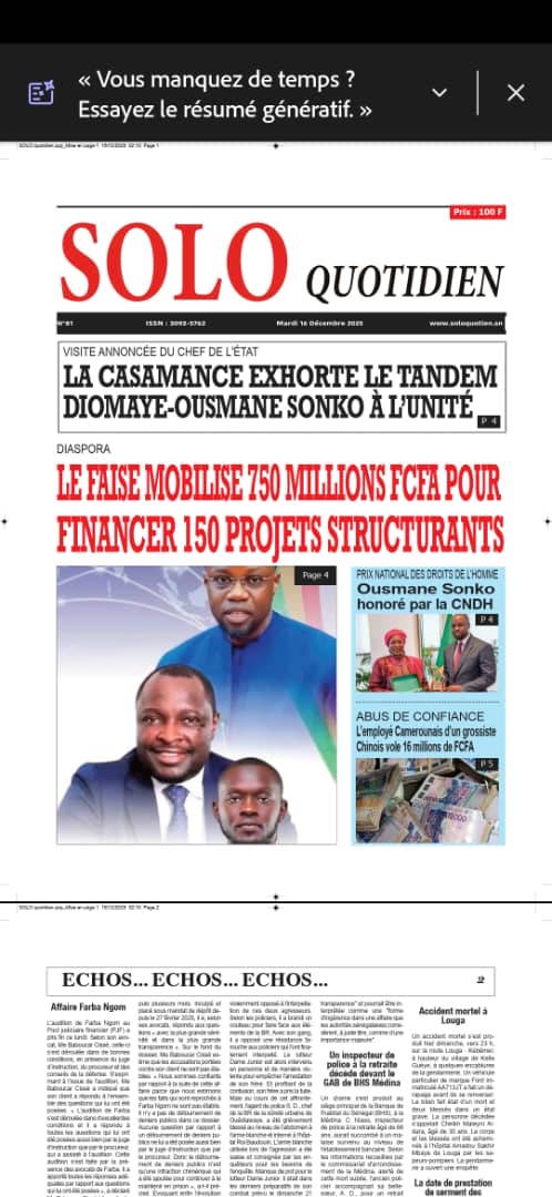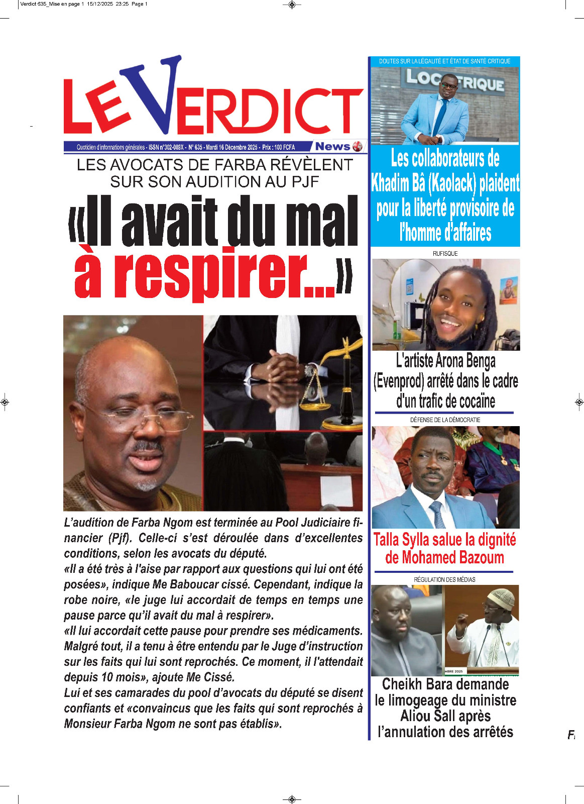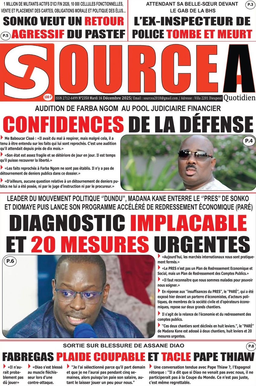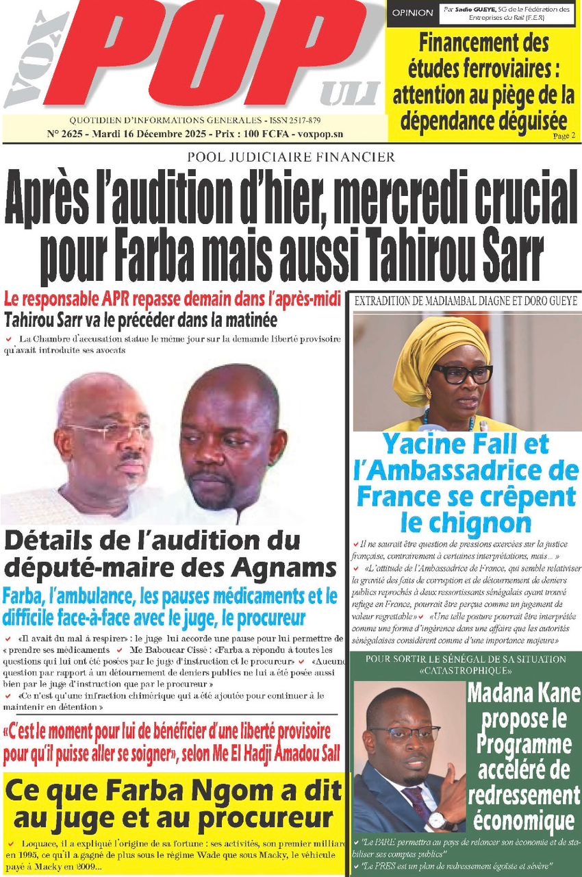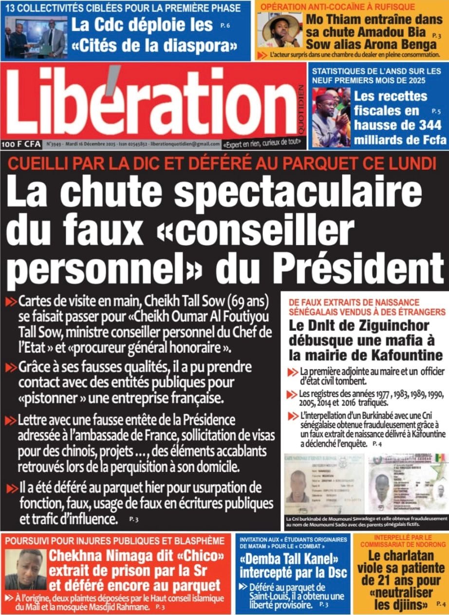 Les journaux sénégalais du mardi 16 décembre 2025 sont plus nombreux que d’habitude, du fait de la réapparition de plusieurs titres après la décision de la Cour Suprême défavorable au processus d’identification initié par le ministère de la Communication.