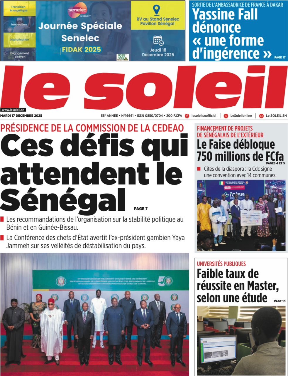 Photos. Les journaux sénégalais du mardi 16 décembre 2025