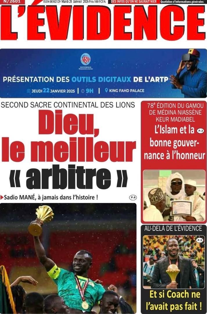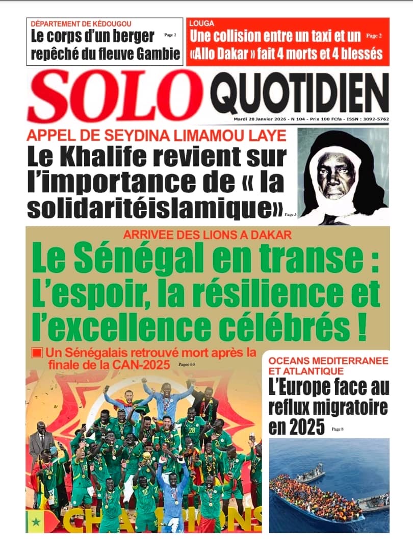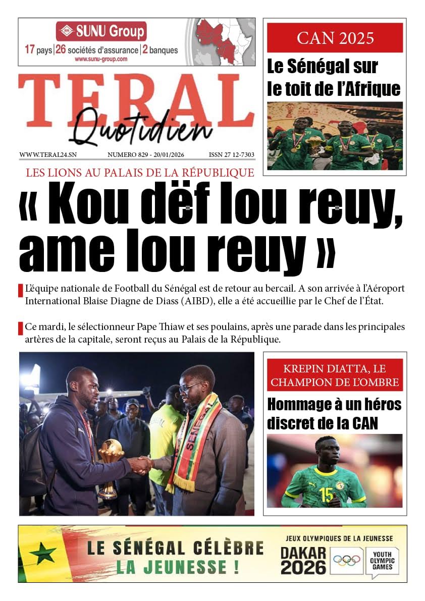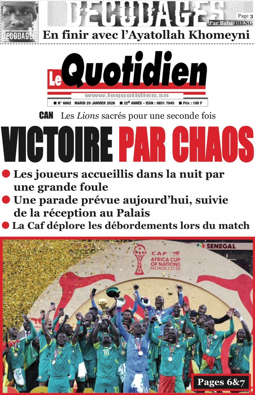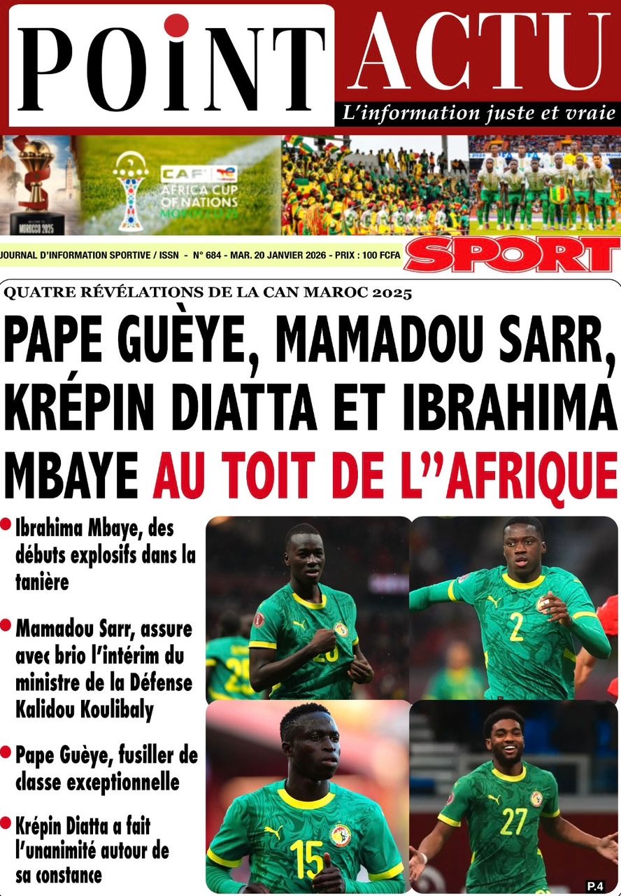 Les journaux sénégalais du mardi 20 janvier 2026 est toujours aux couleurs du sacre des Lions à la CAN 2025 et l’accueil triomphal à eux réservé lors de leur retour au bercail.