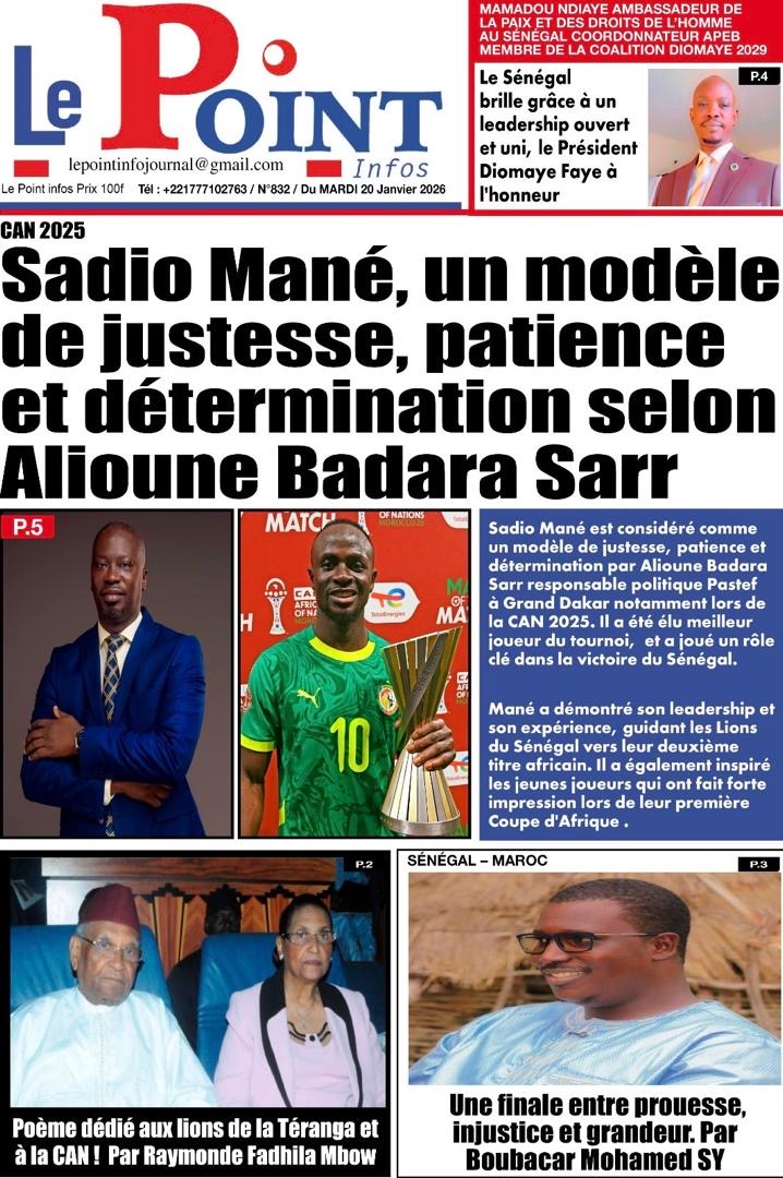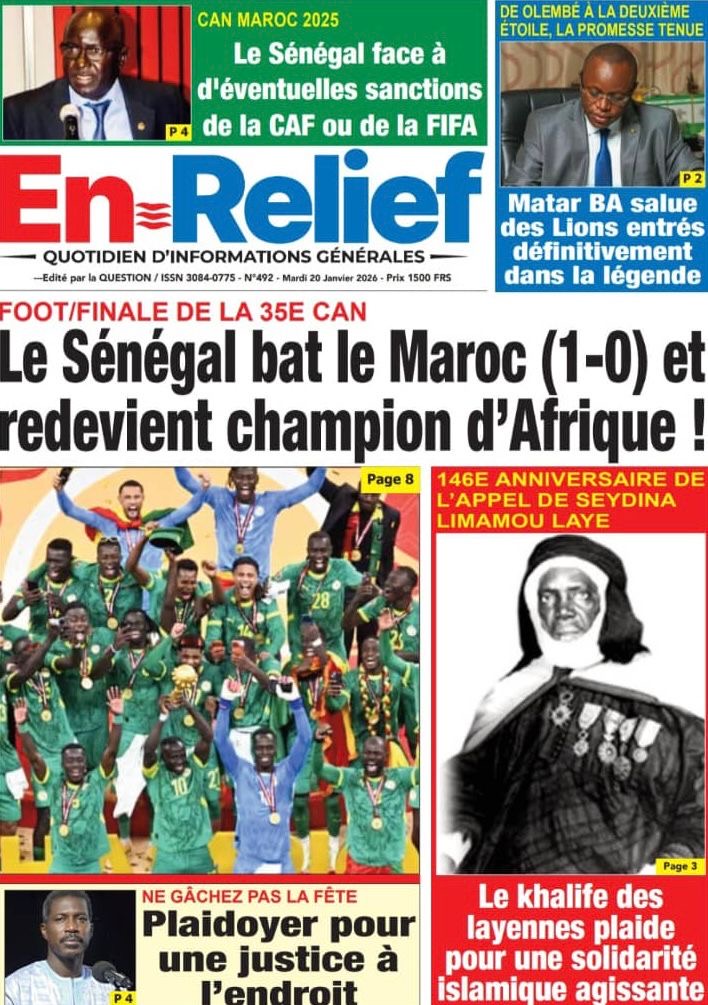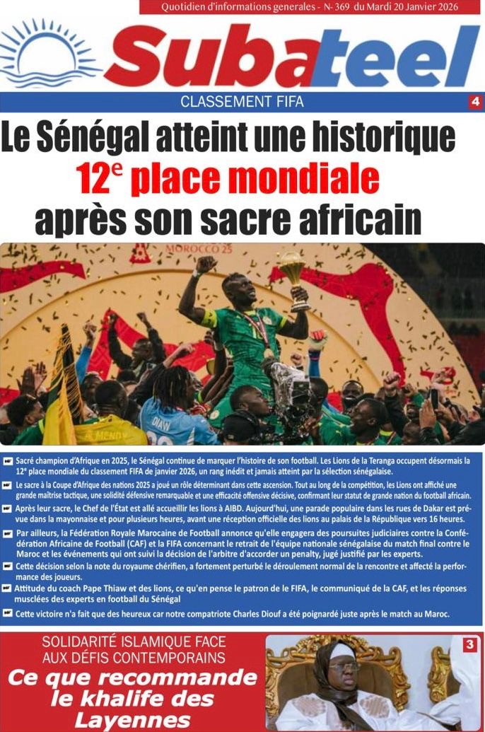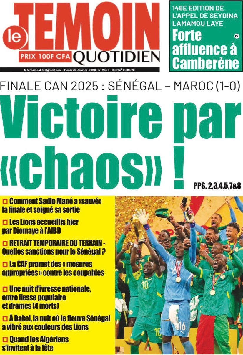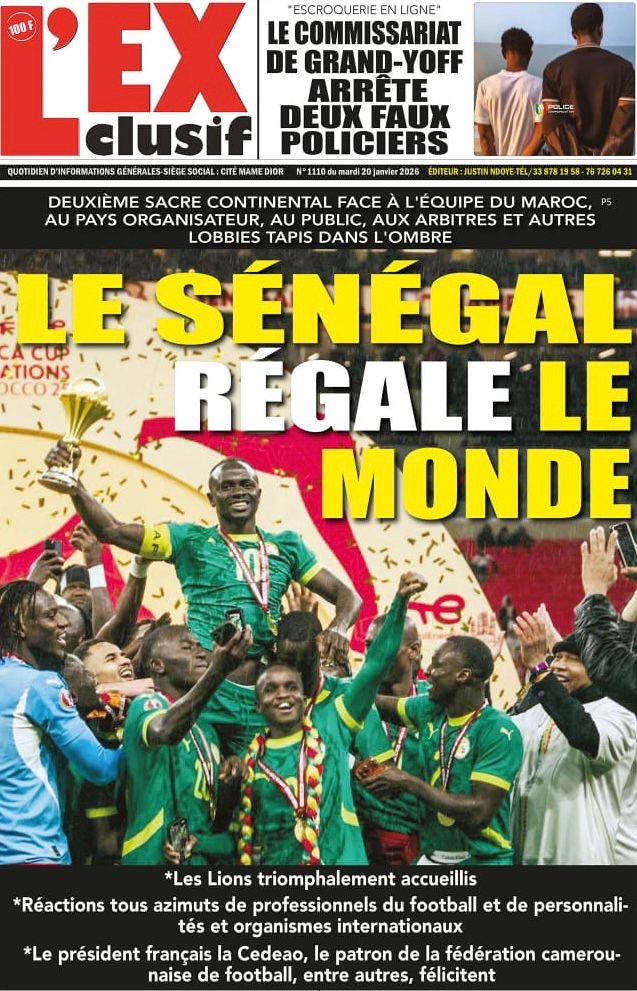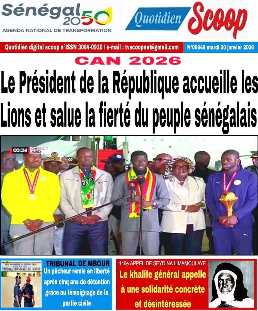 Les journaux sénégalais du mardi 20 janvier 2026 est toujours aux couleurs du sacre des Lions à la CAN 2025 et l’accueil triomphal à eux réservé lors de leur retour au bercail.