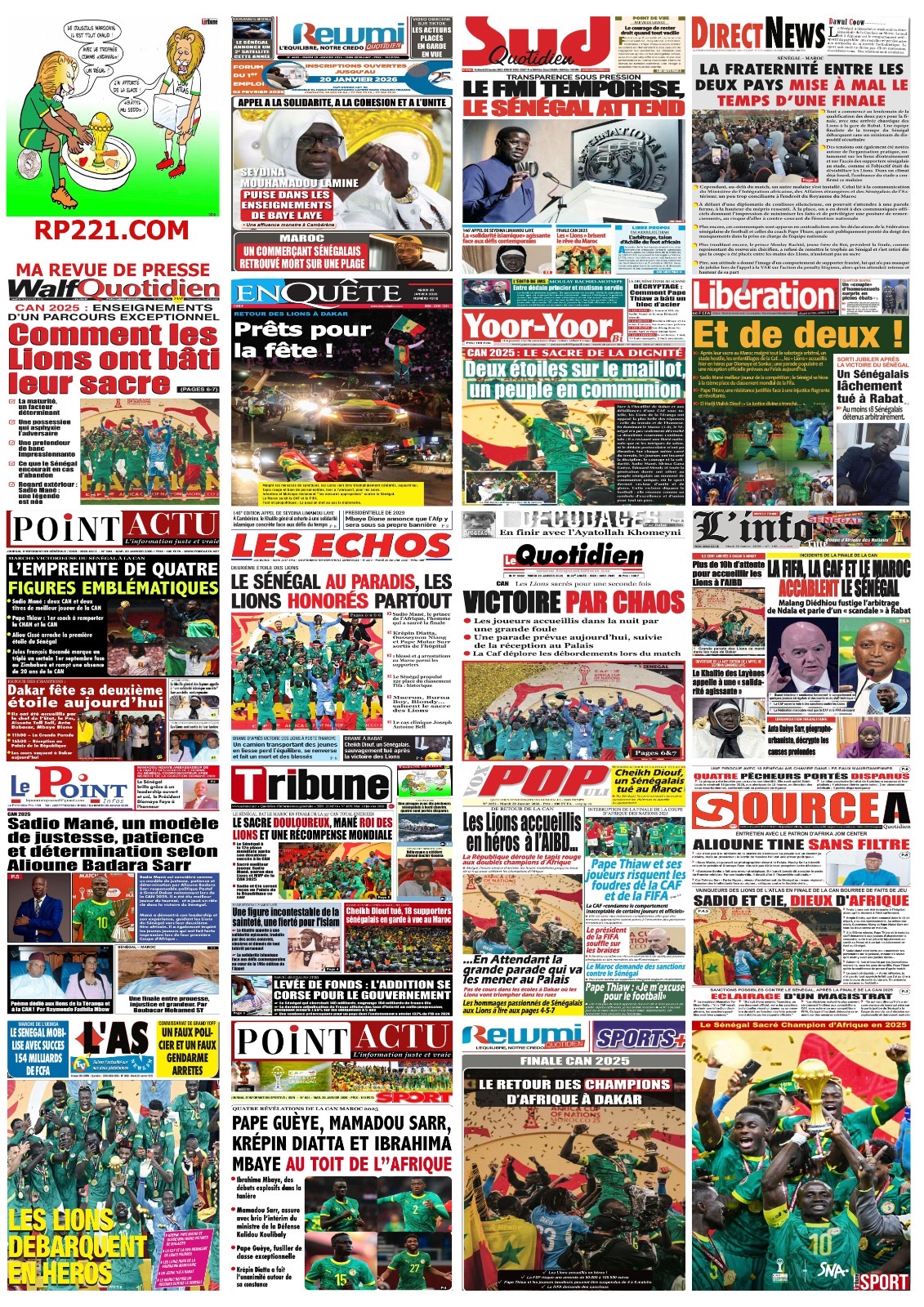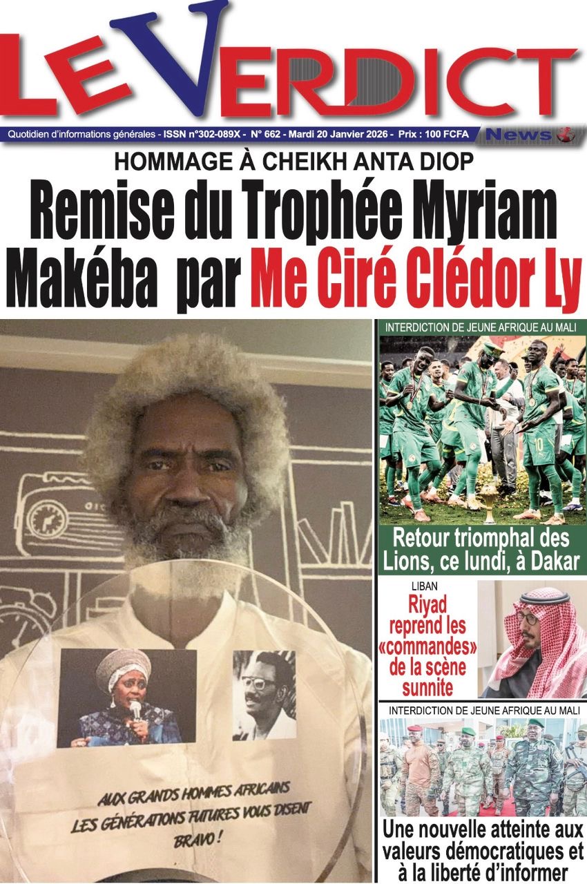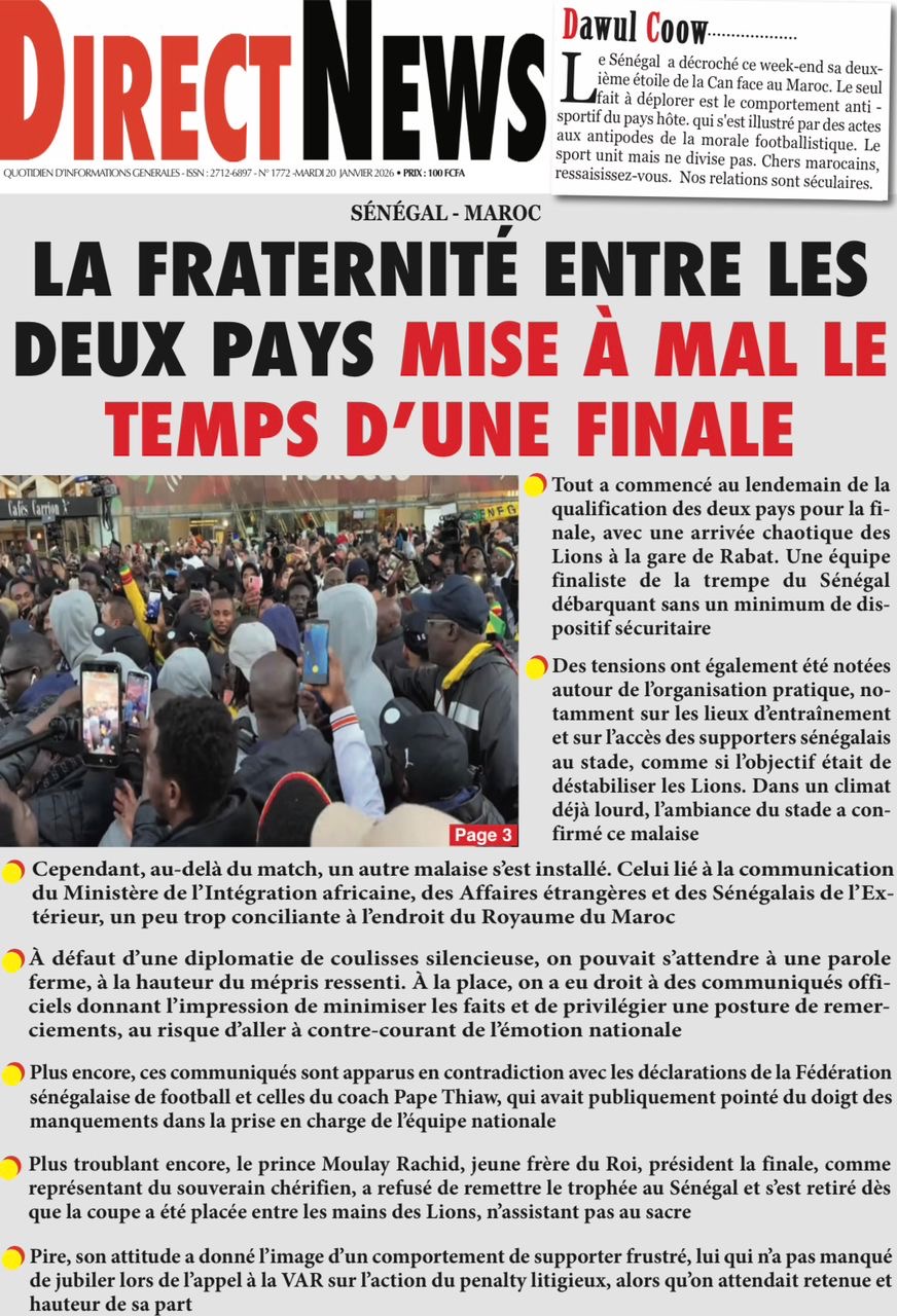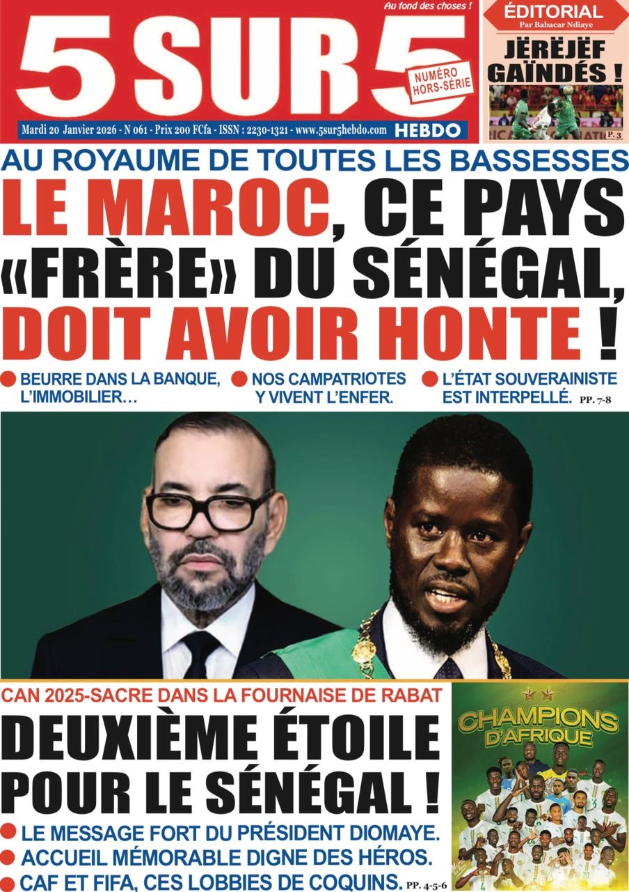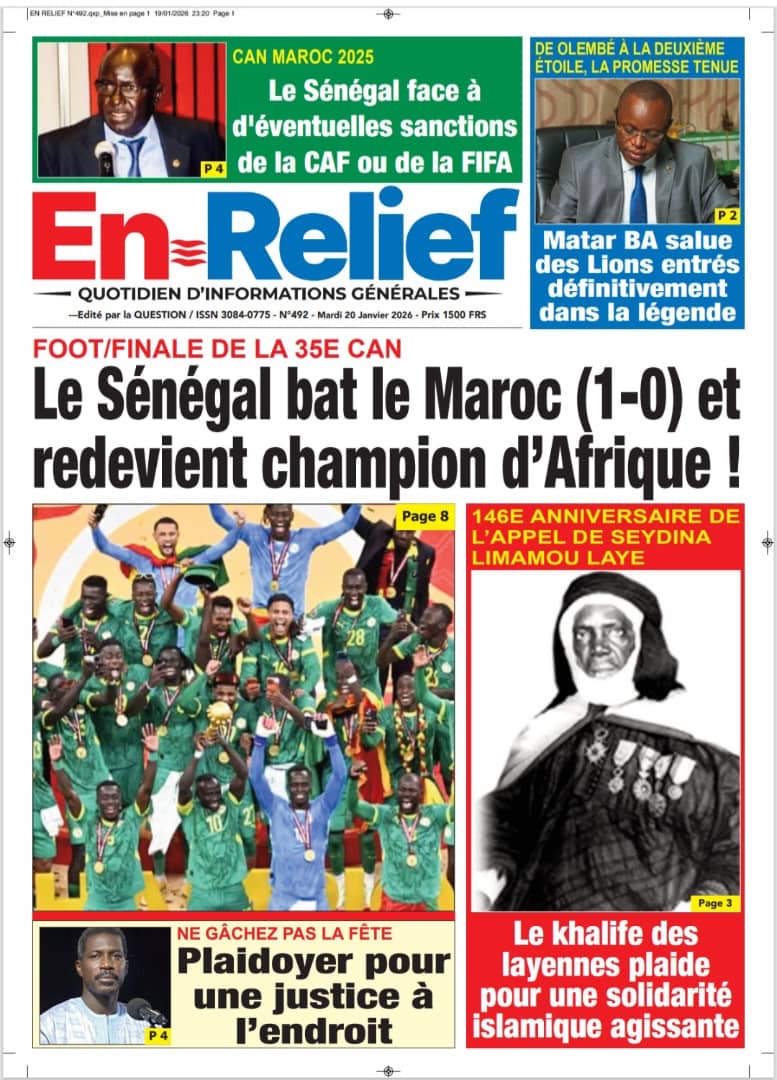 Les journaux sénégalais du mardi 20 janvier 2026 est toujours aux couleurs du sacre des Lions à la CAN 2025 et l’accueil triomphal à eux réservé lors de leur retour au bercail.