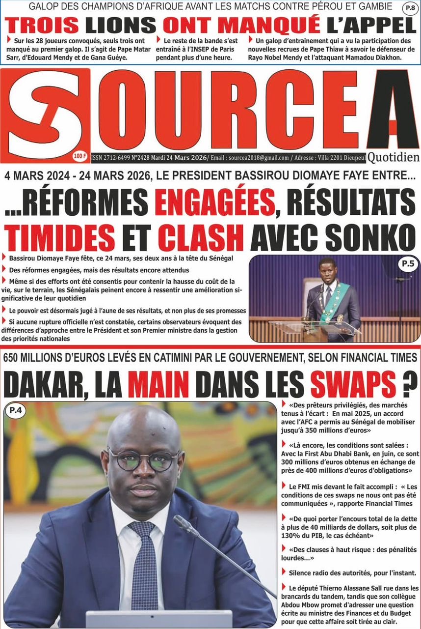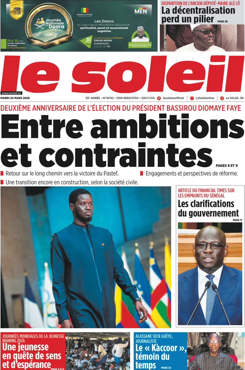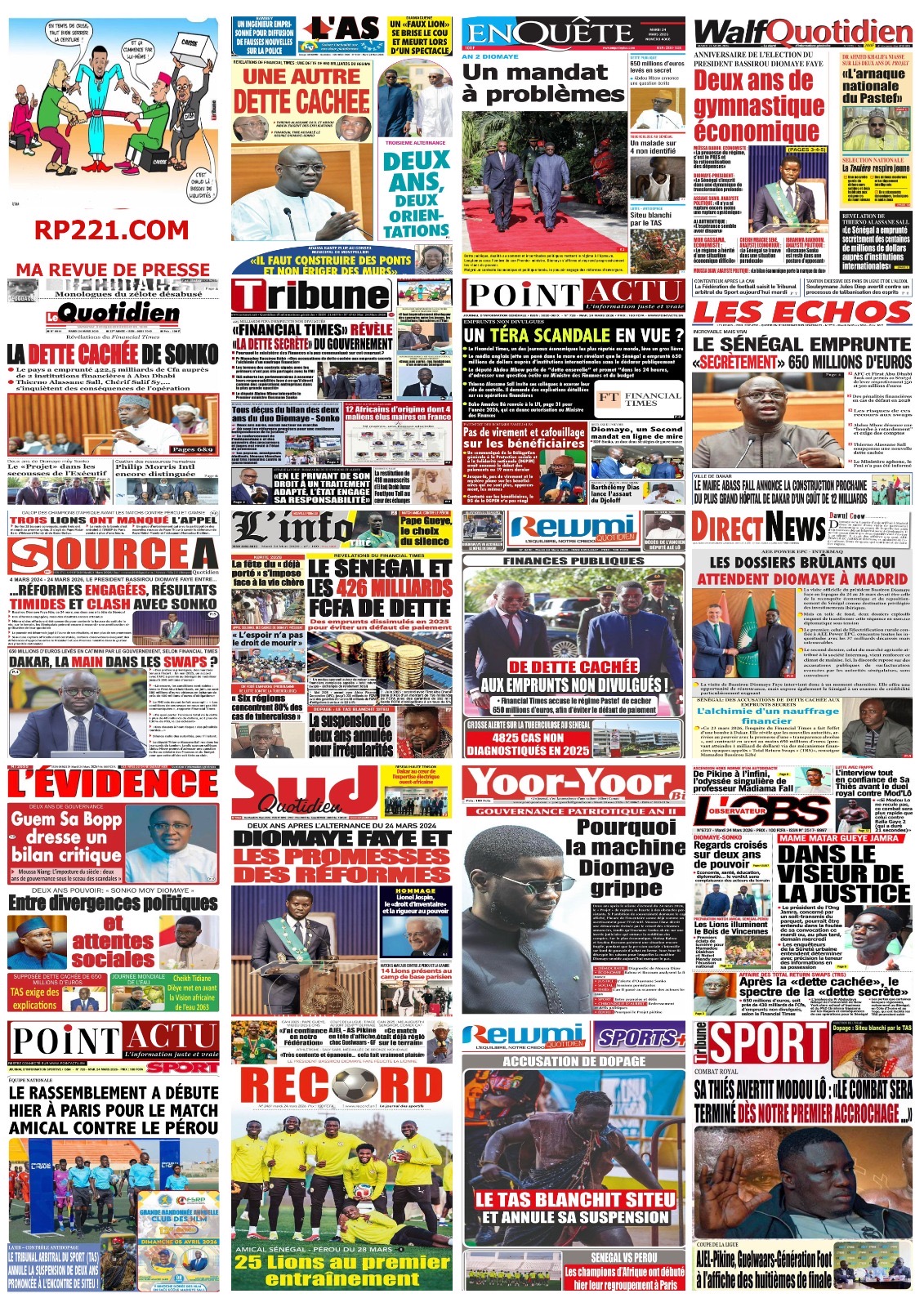 Les journaux sénégalais du mardi 24 mars 2026 Lire les UNES du Sénégal