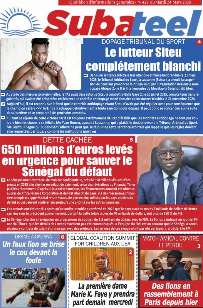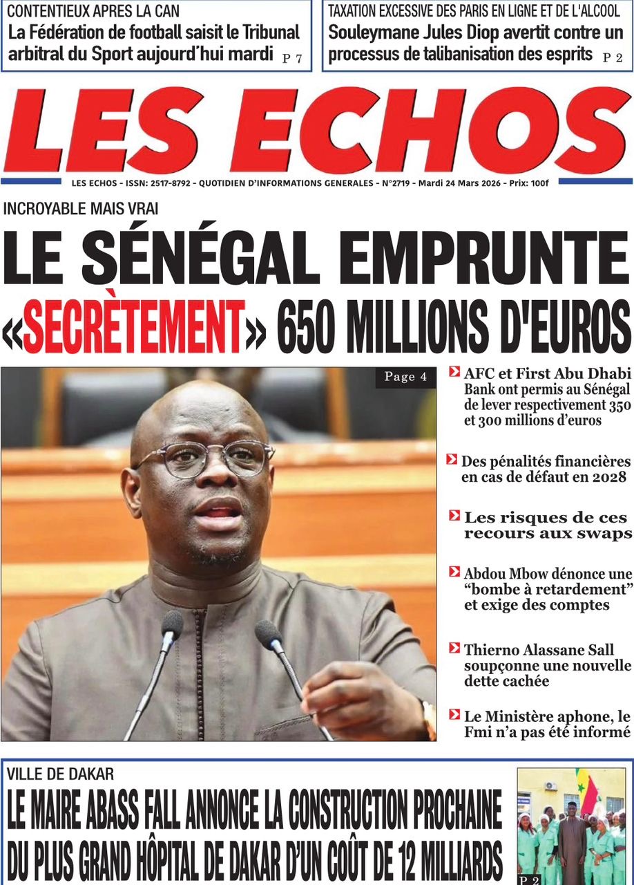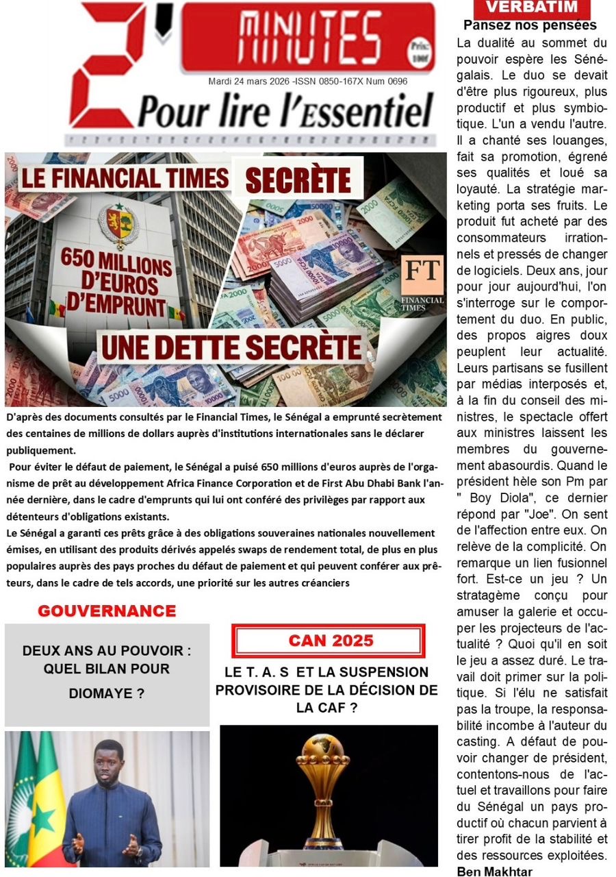 Les journaux sénégalais du mardi 24 mars 2026 Lire les UNES du Sénégal