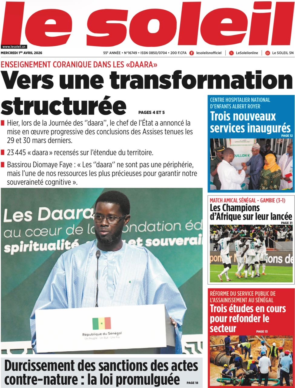 Les journaux sénégalais du mercredi 01 avril 2026