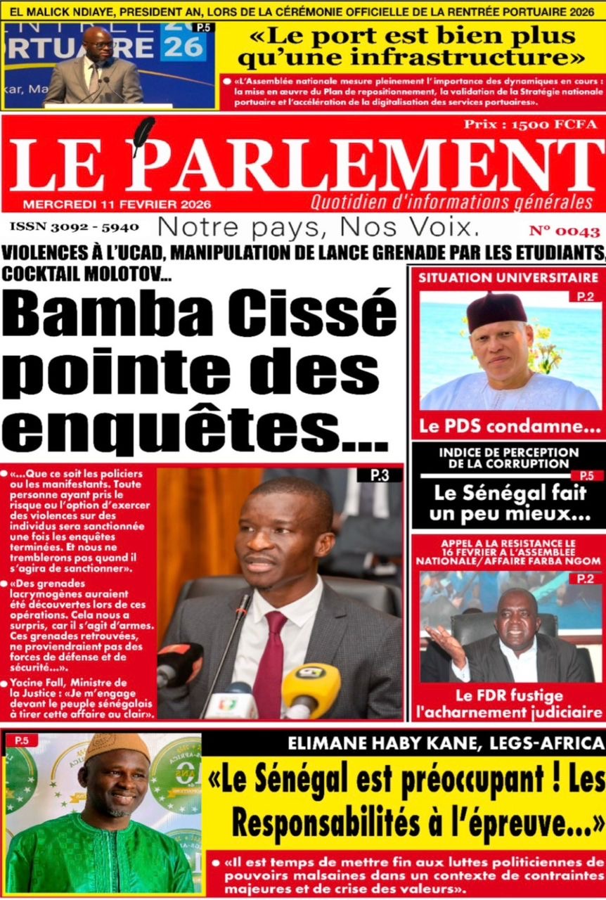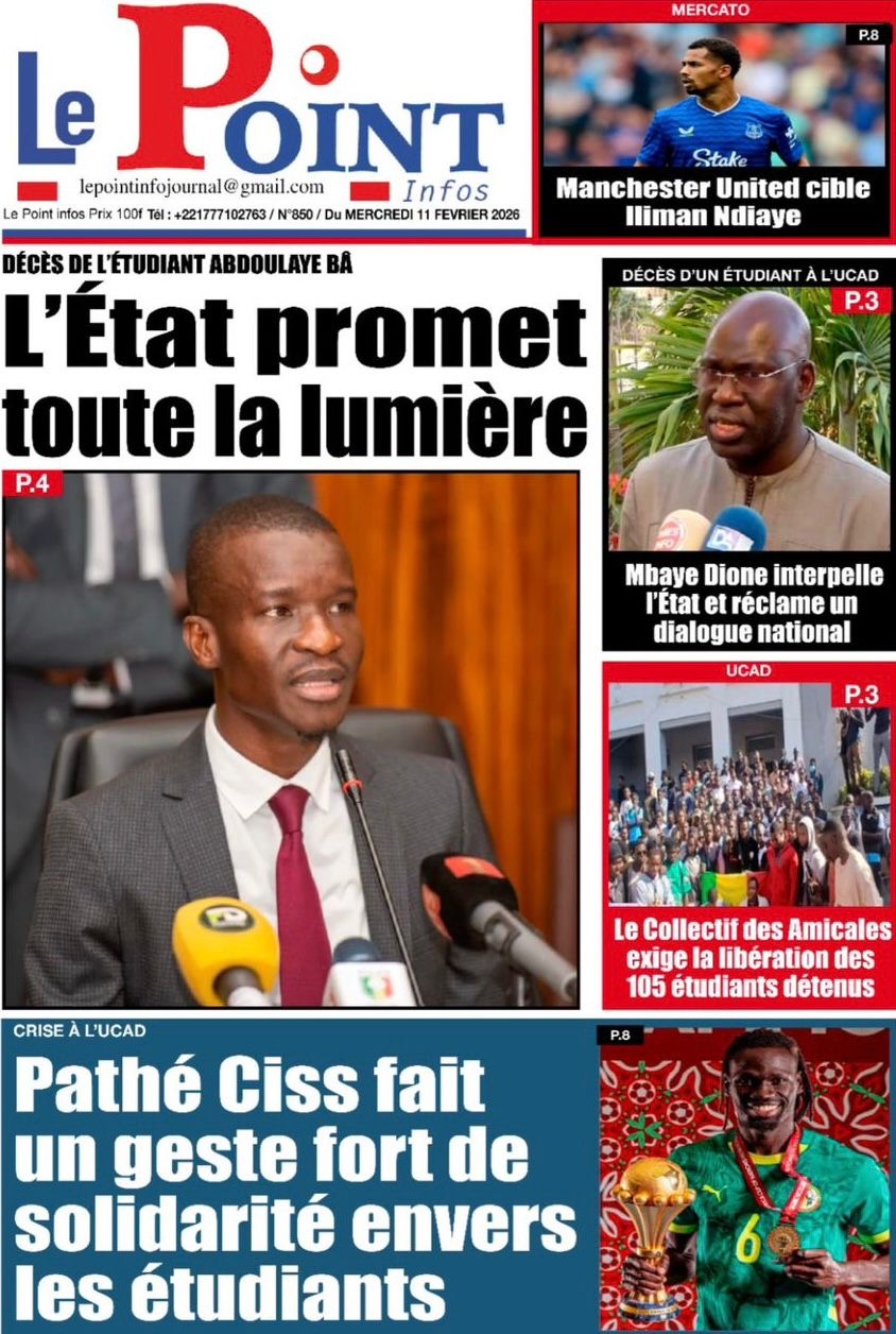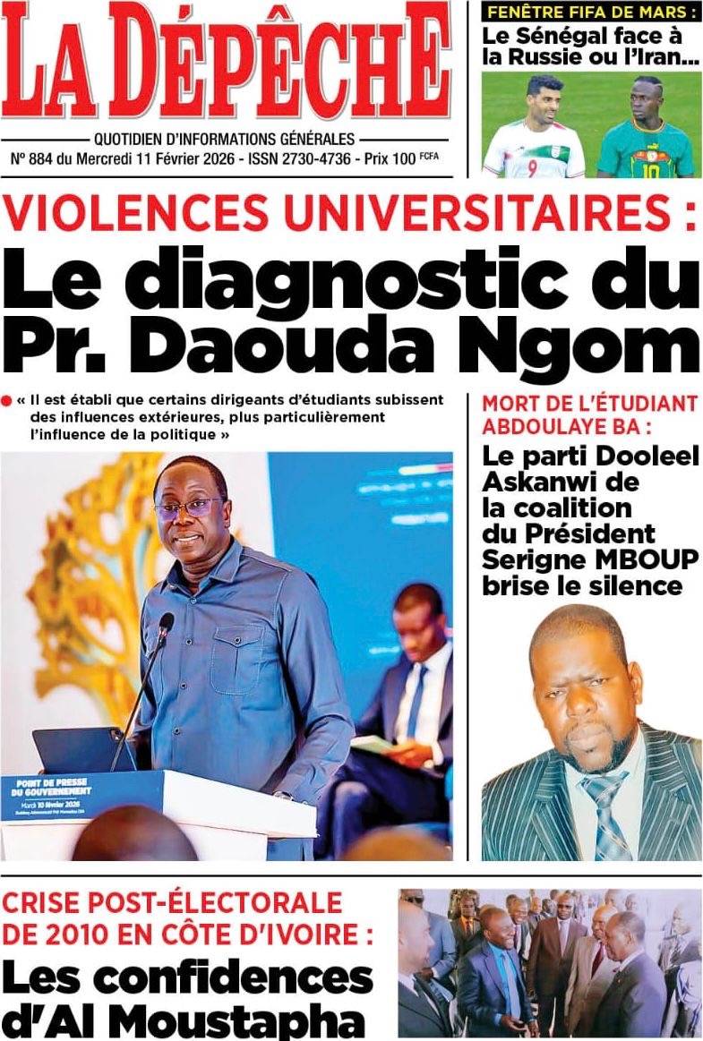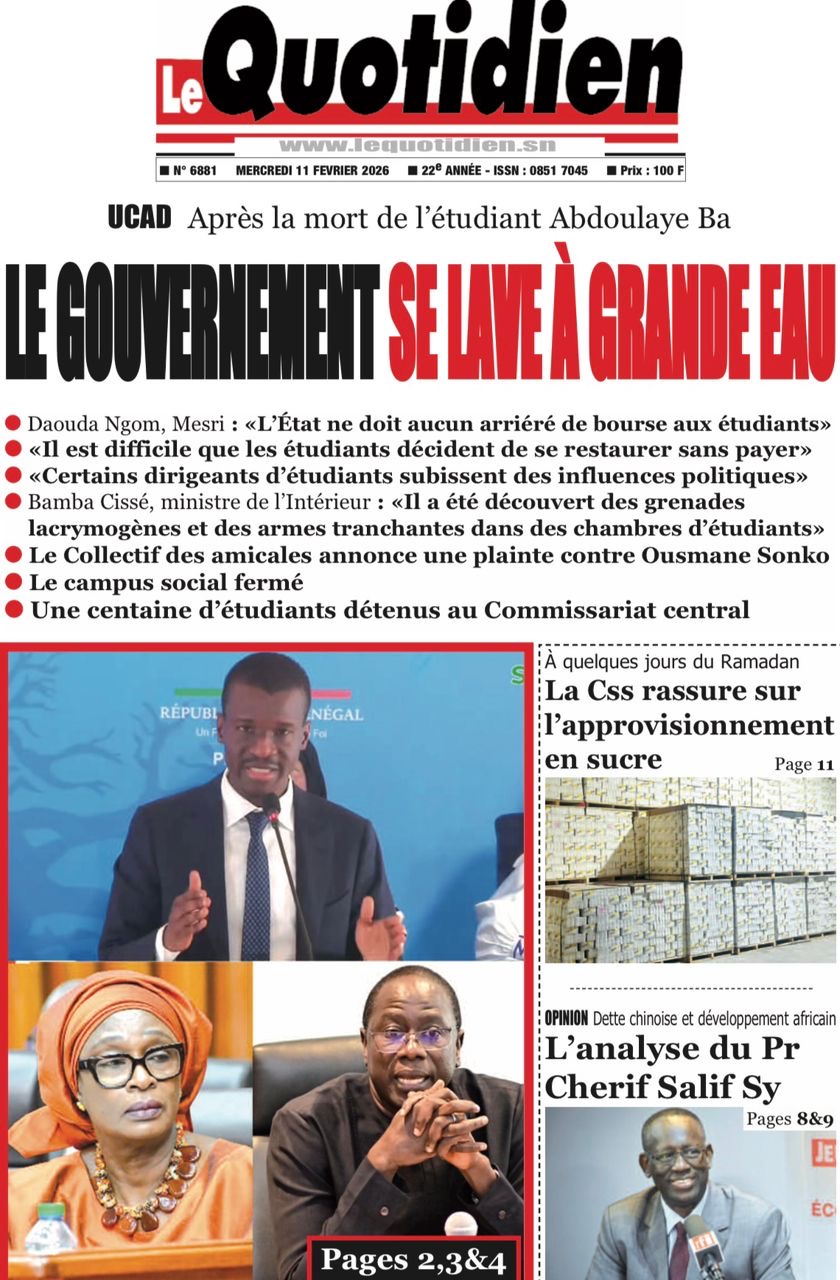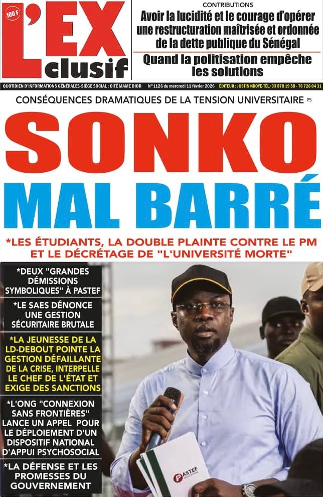 Sénégal : les journaux du mercredi 11 février 2026 sont toujours dans l’actualité de la situation dans les universités avec notamment le point de presse du Gouvernement sur la question, avec à l’animation 4 ministres.