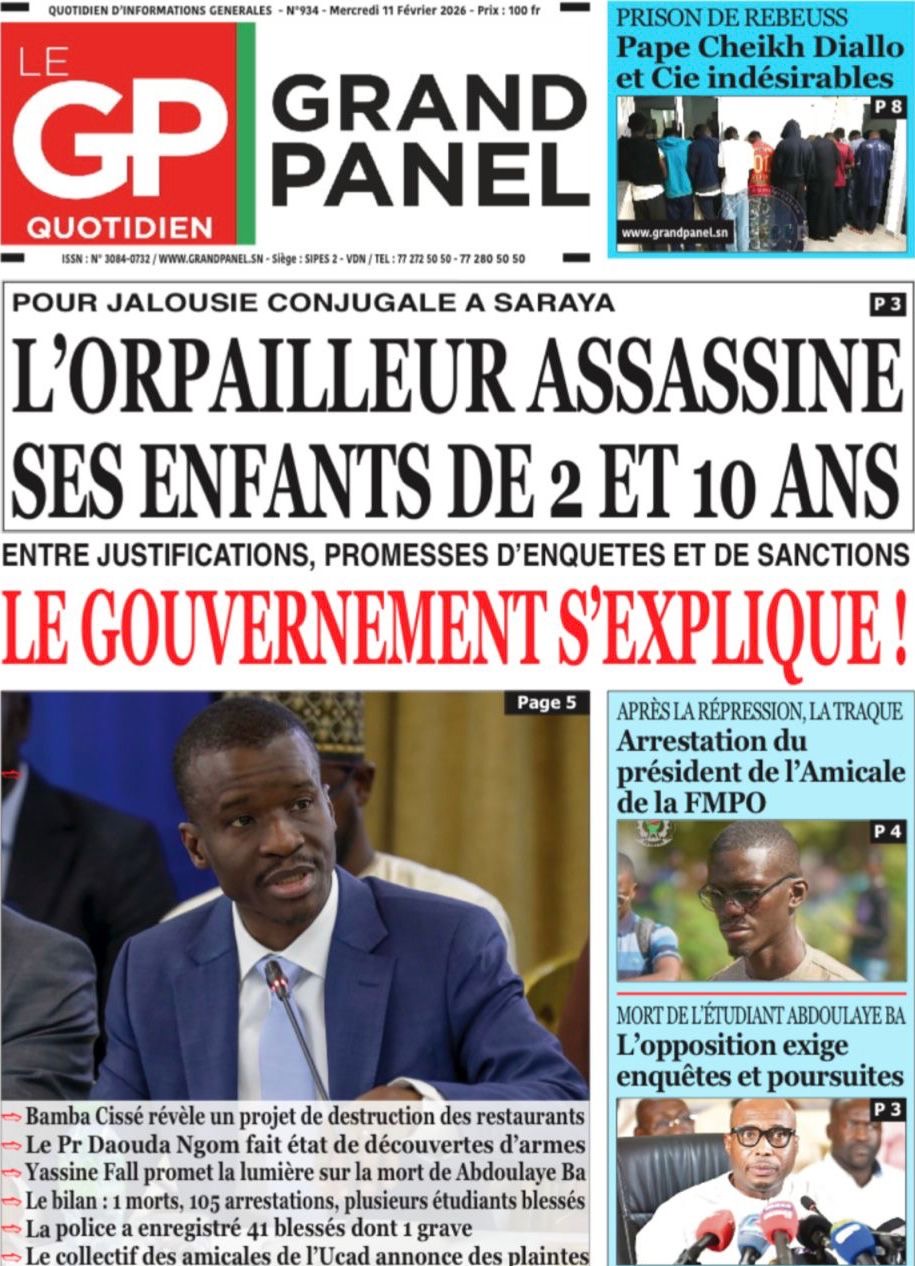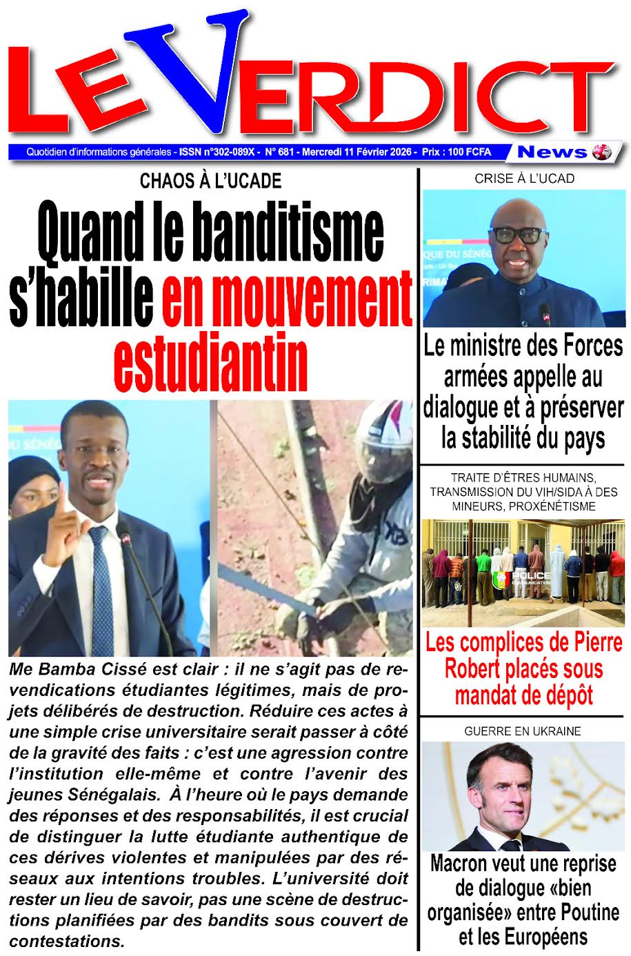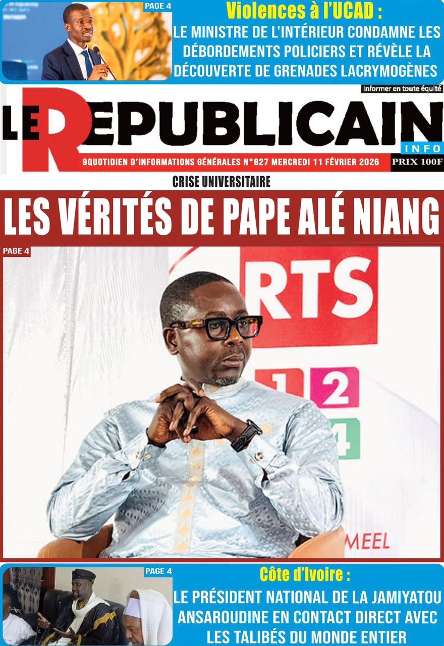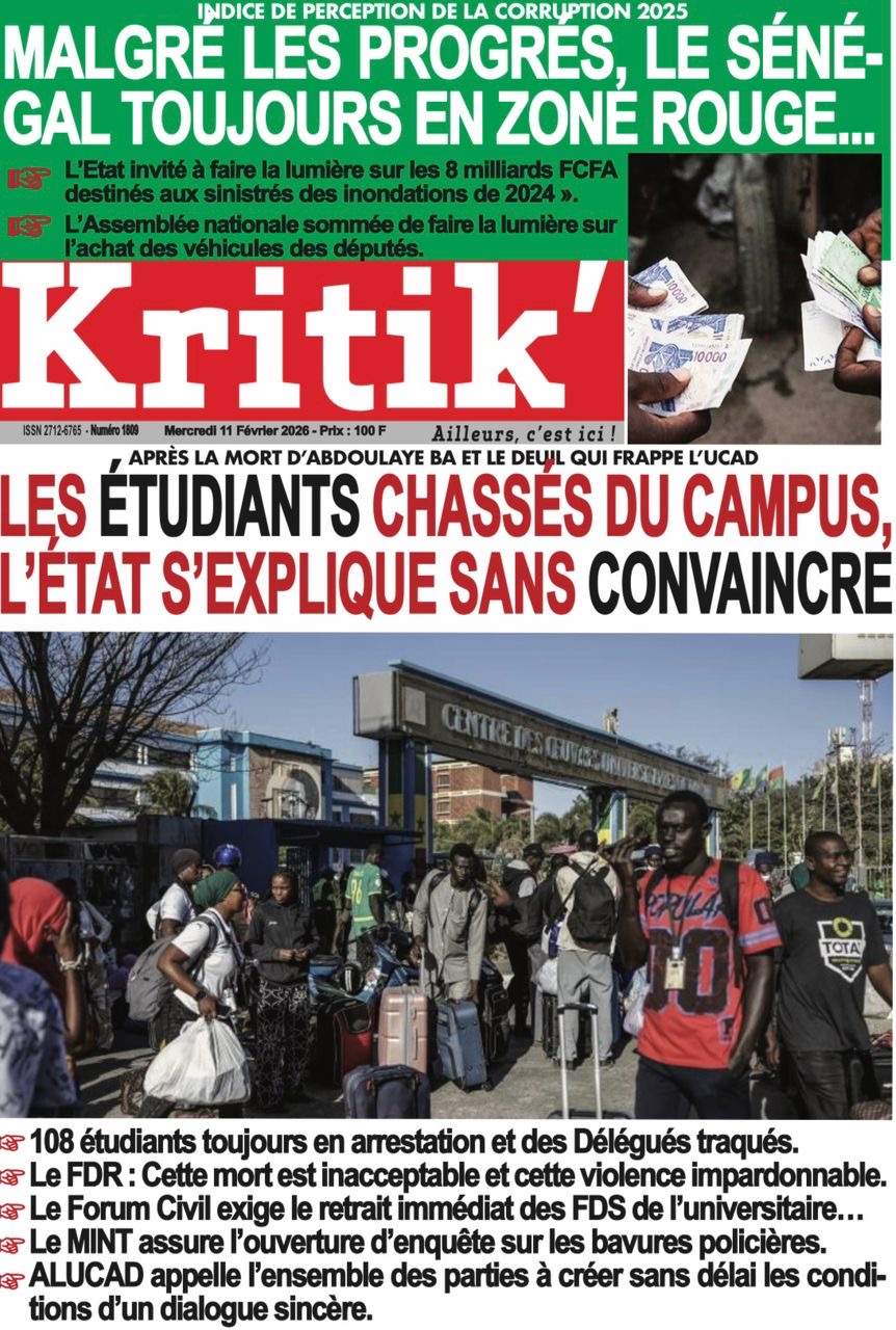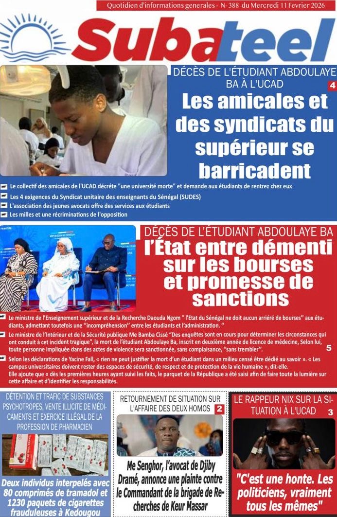 Sénégal : les journaux du mercredi 11 février 2026 sont toujours dans l’actualité de la situation dans les universités avec notamment le point de presse du Gouvernement sur la question, avec à l’animation 4 ministres.
