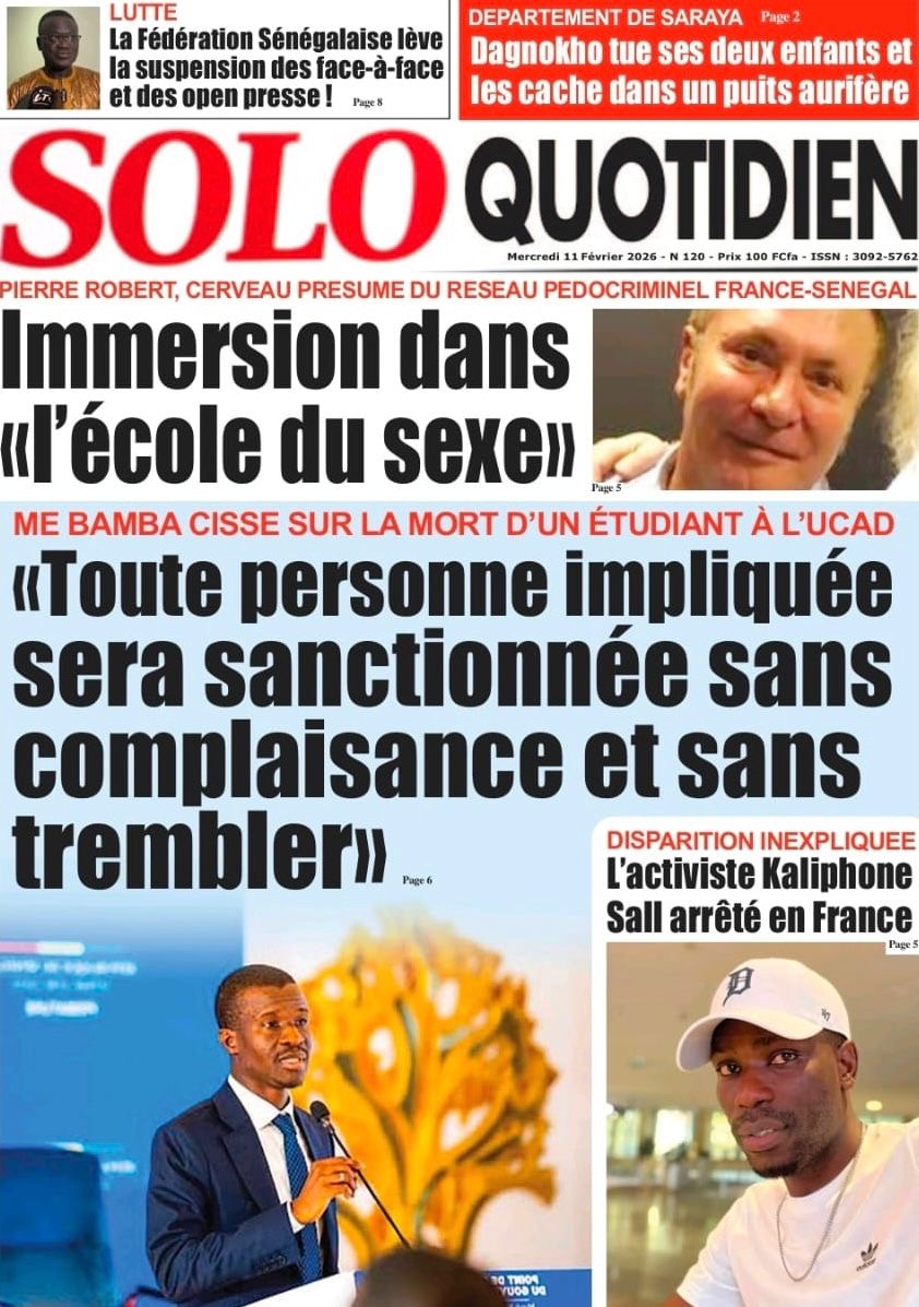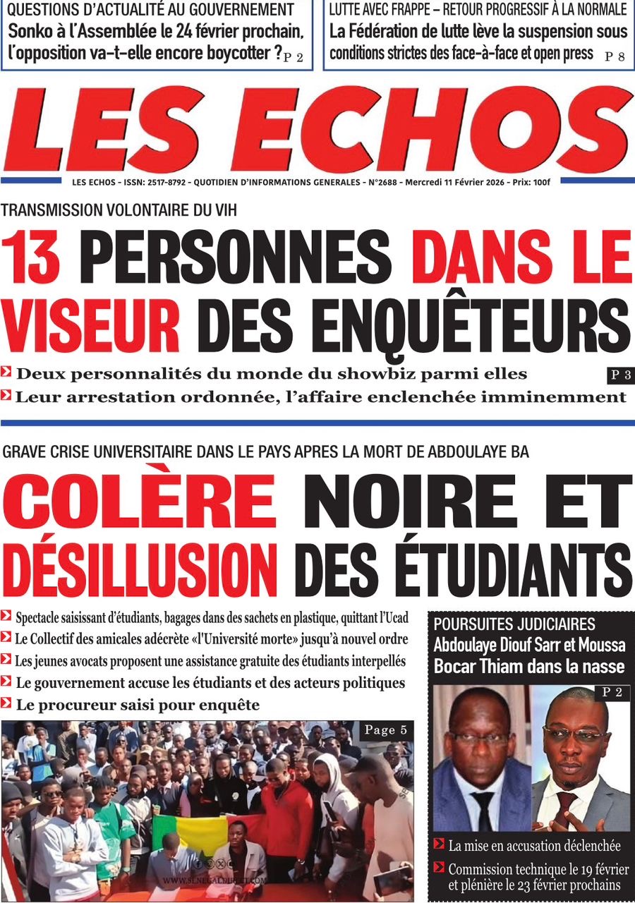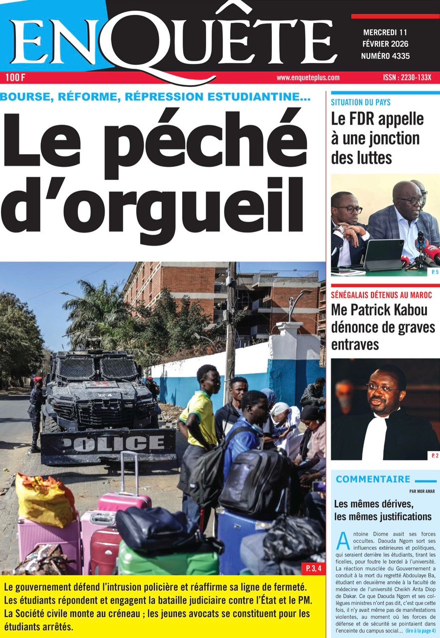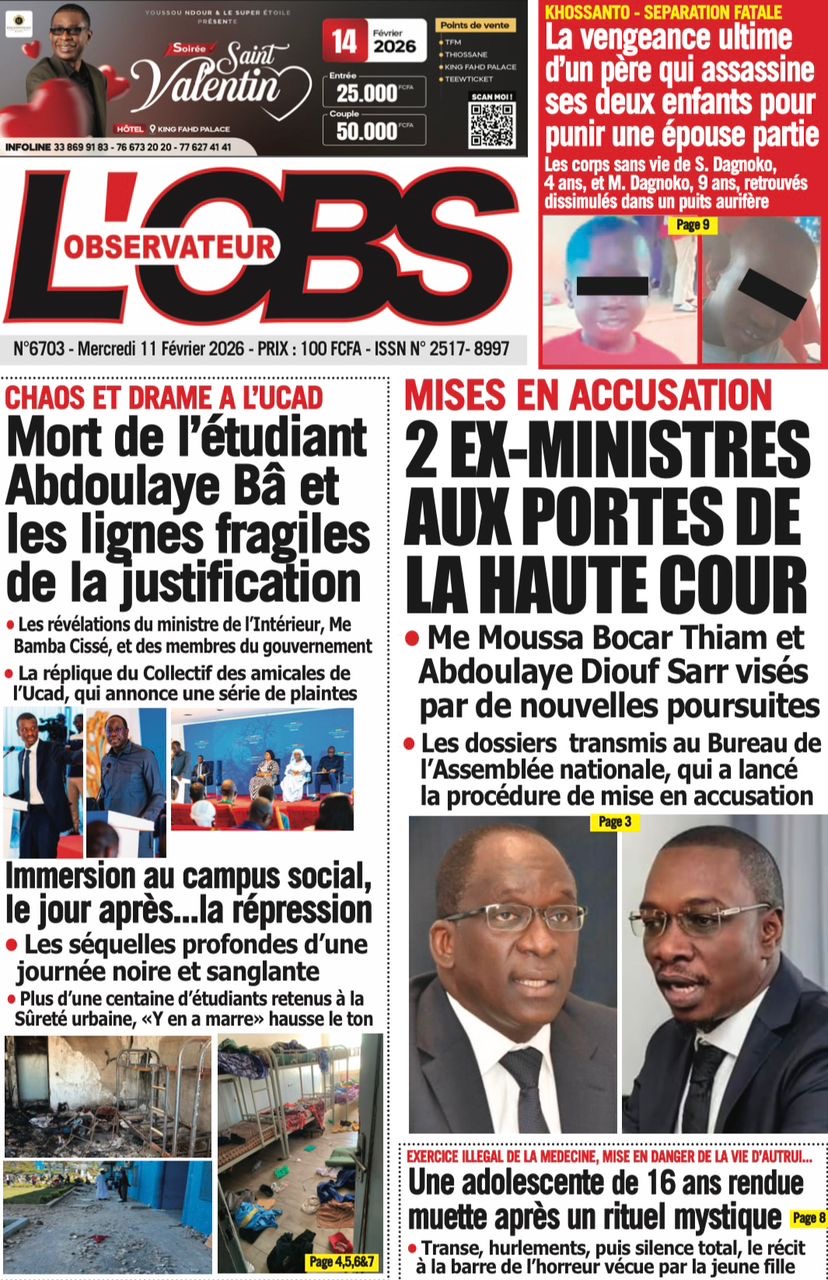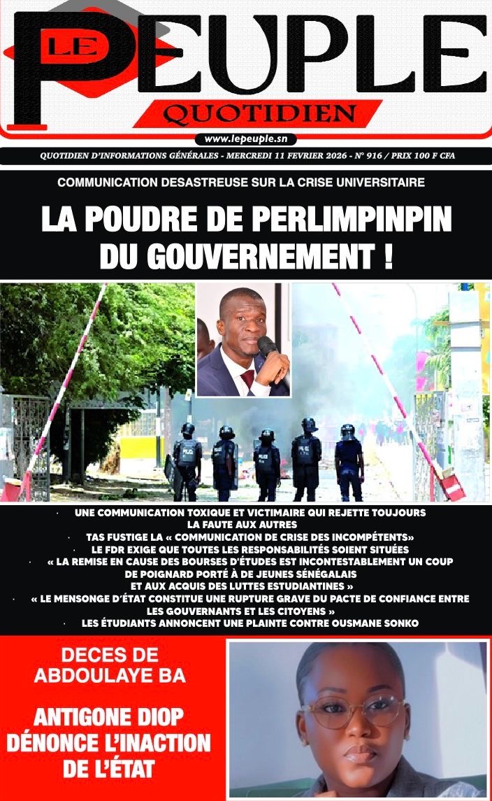 Sénégal : les journaux du mercredi 11 février 2026 sont toujours dans l’actualité de la situation dans les universités avec notamment le point de presse du Gouvernement sur la question, avec à l’animation 4 ministres.