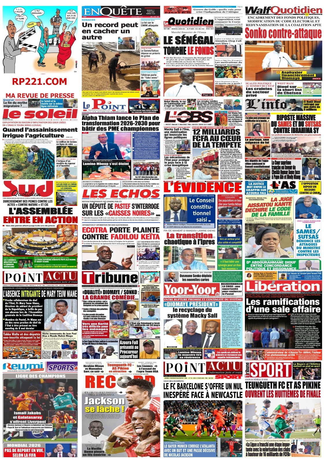 Les journaux sénégalais du mercredi 11 mars 2026