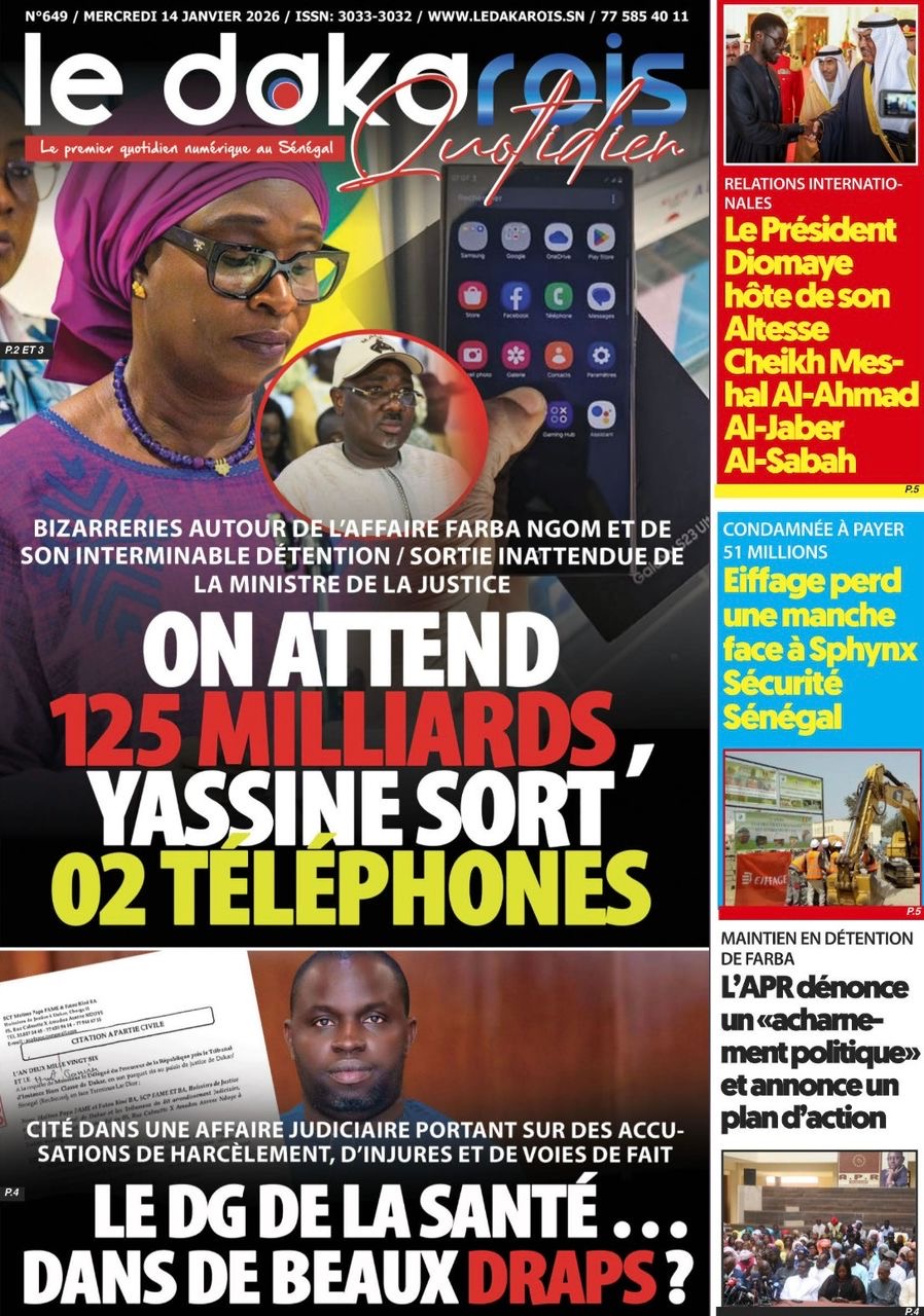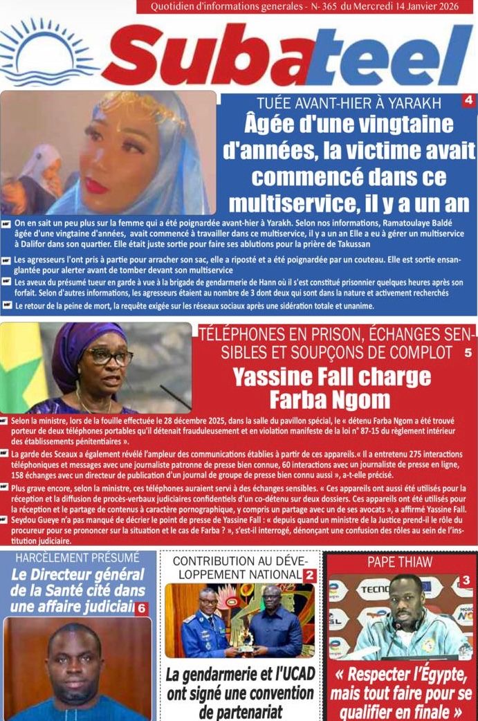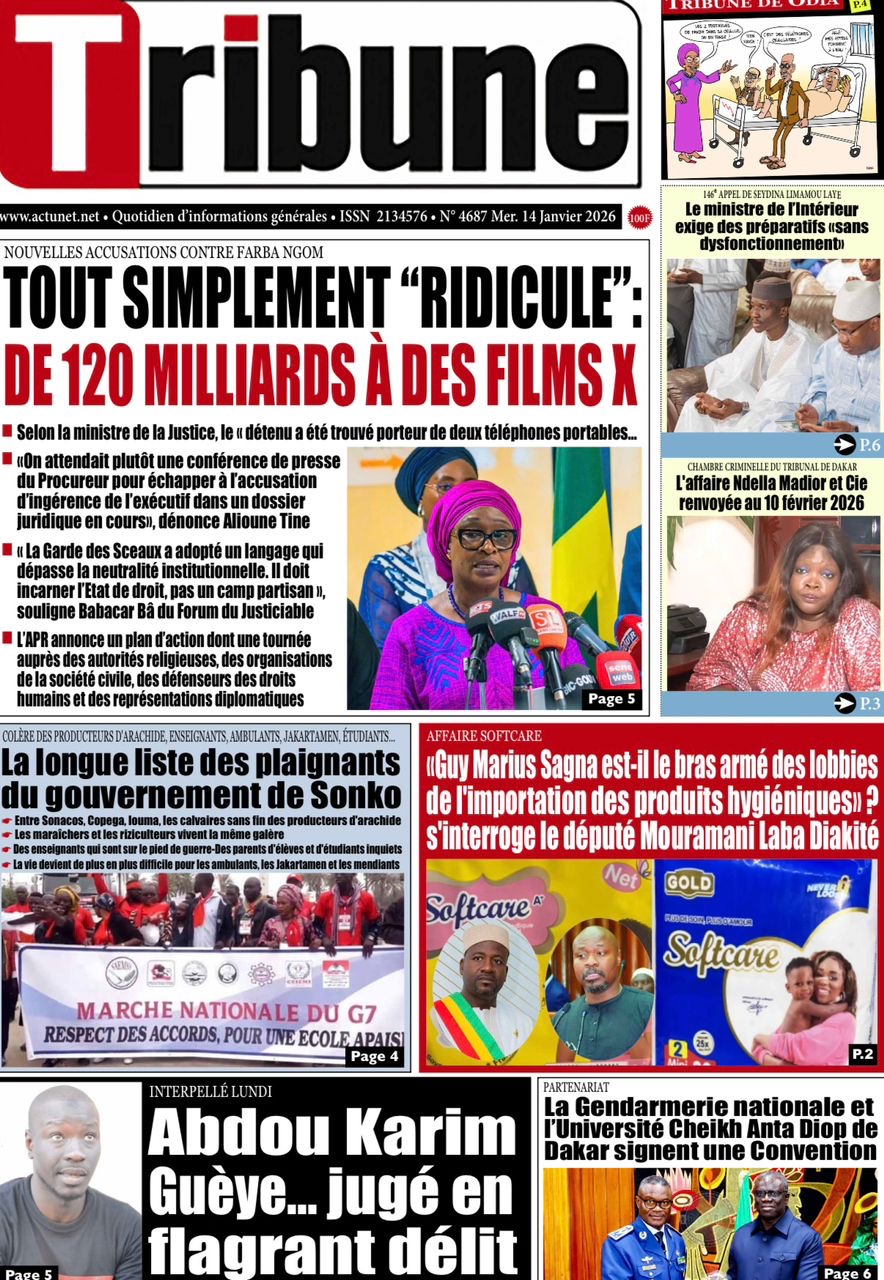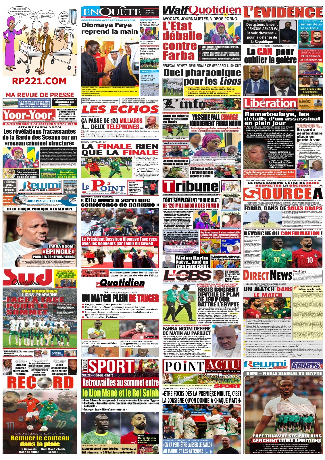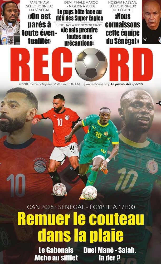 Les journaux sénégalais du mercredi 14 janvier 2026 ont deux sujets majeurs : la demi-finale de la CAN 2025 à disputer par les Lions cet après midi contre l’Egypte à Tanger au Maroc et les nouvelles accusations dans le dossier de Farba Ngom, le maire des Agnams en détention, brandies par la ministre de la Justice Yassine Fall.
