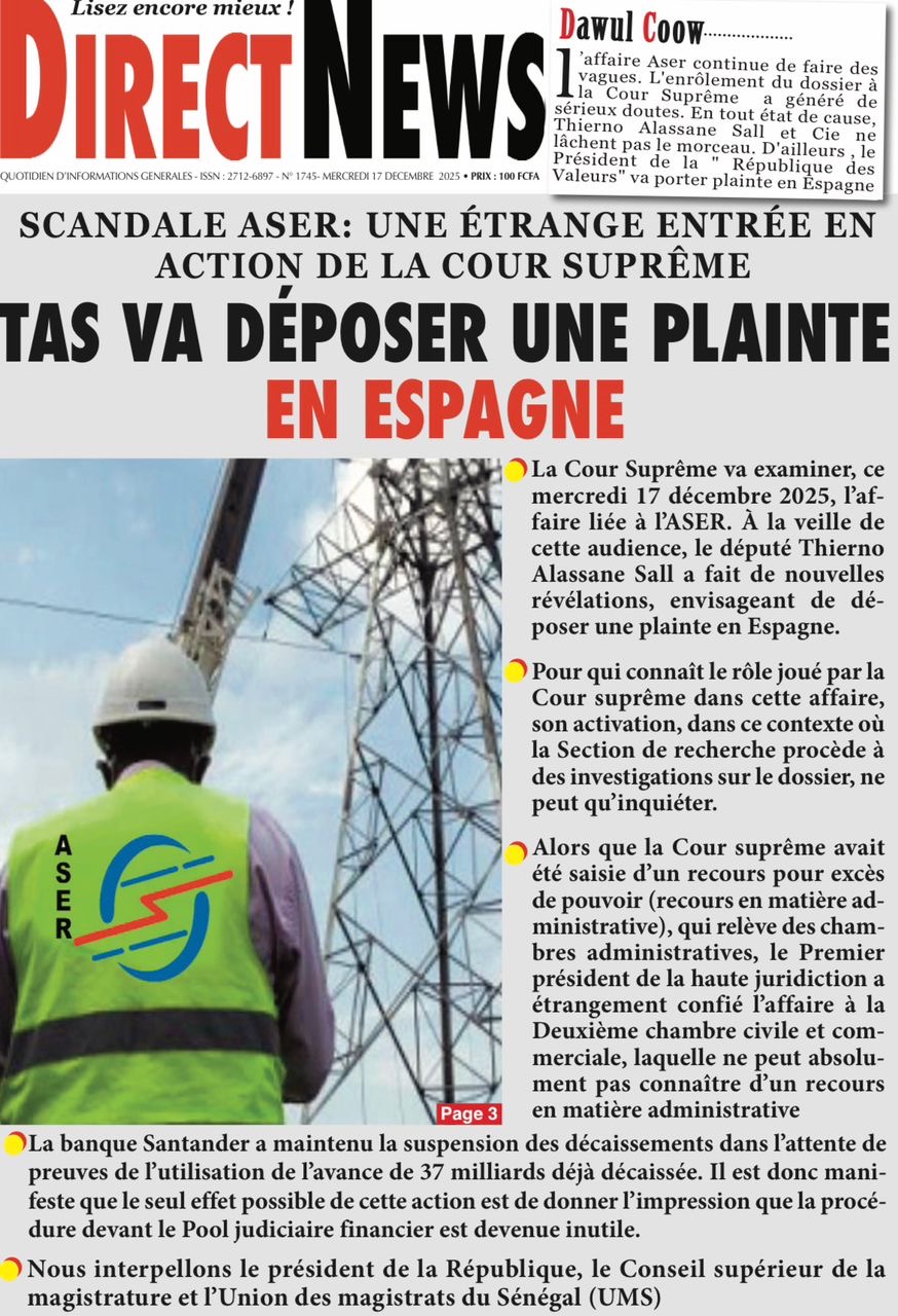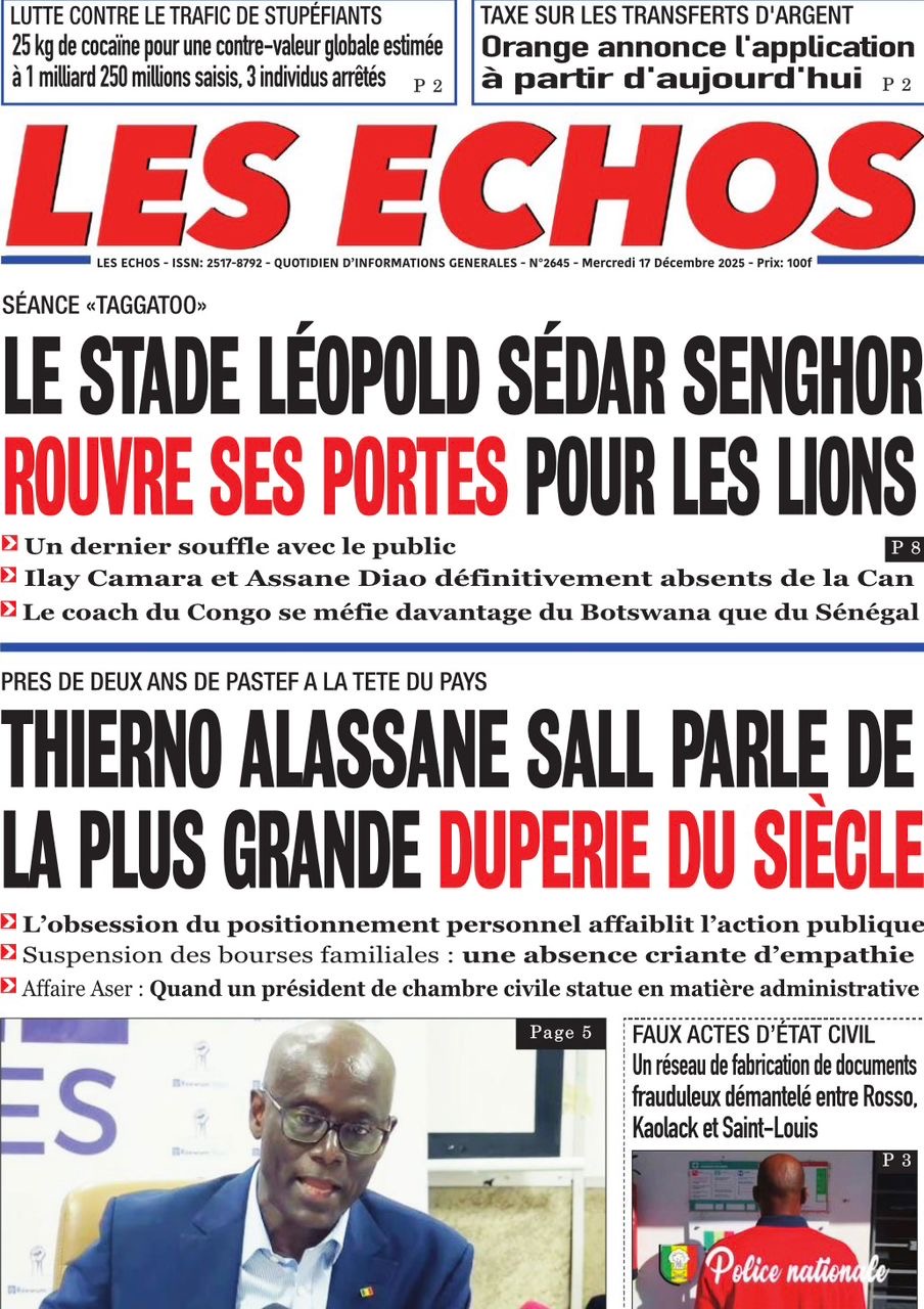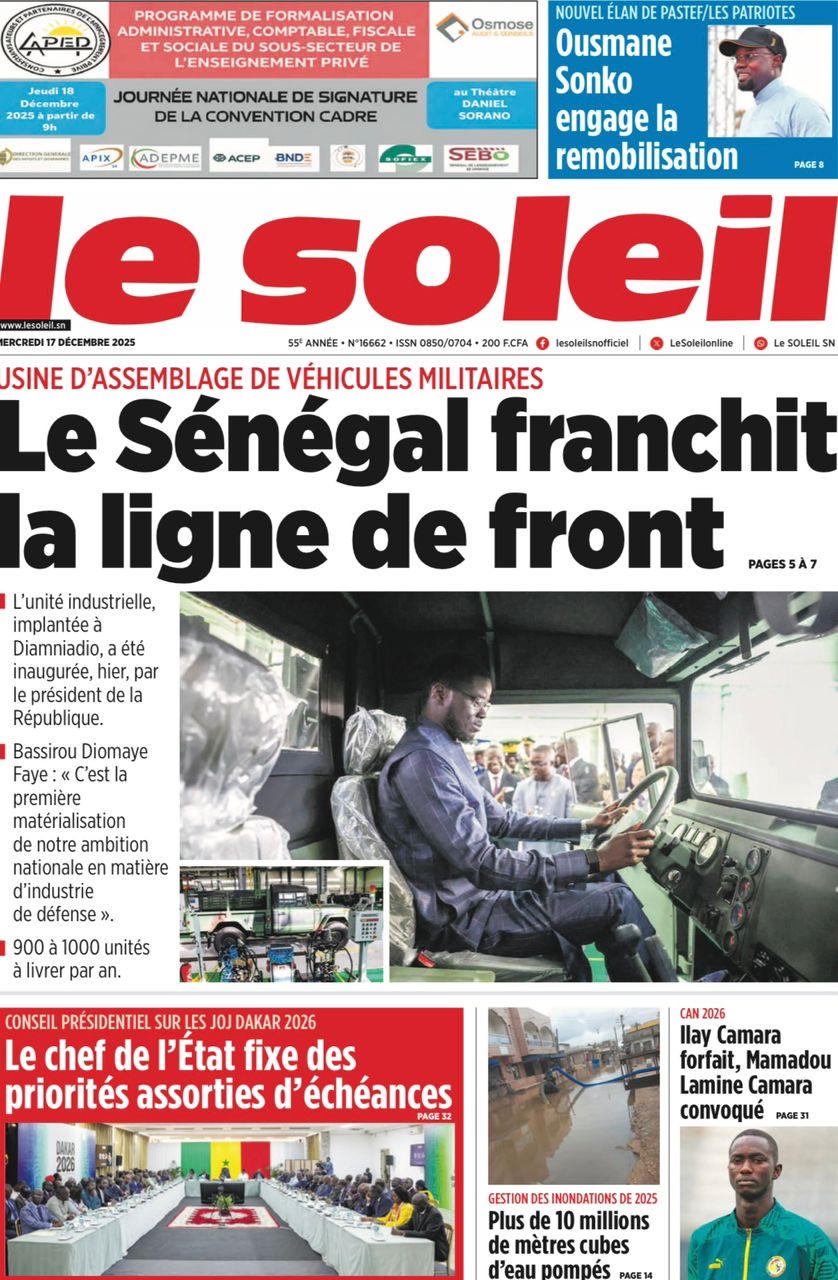 Les journaux sénégalais du mercredi 17 décembre 2025