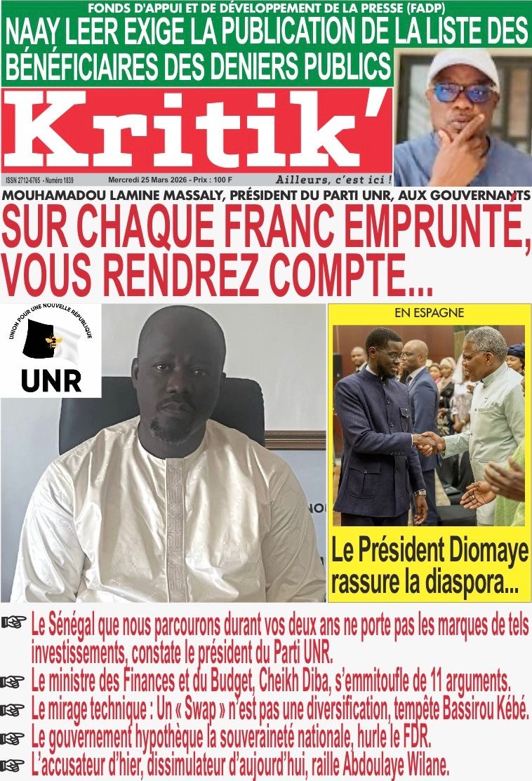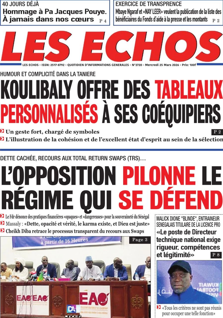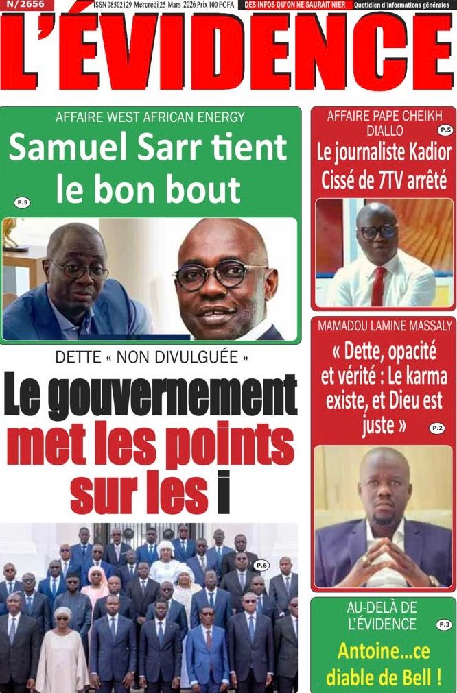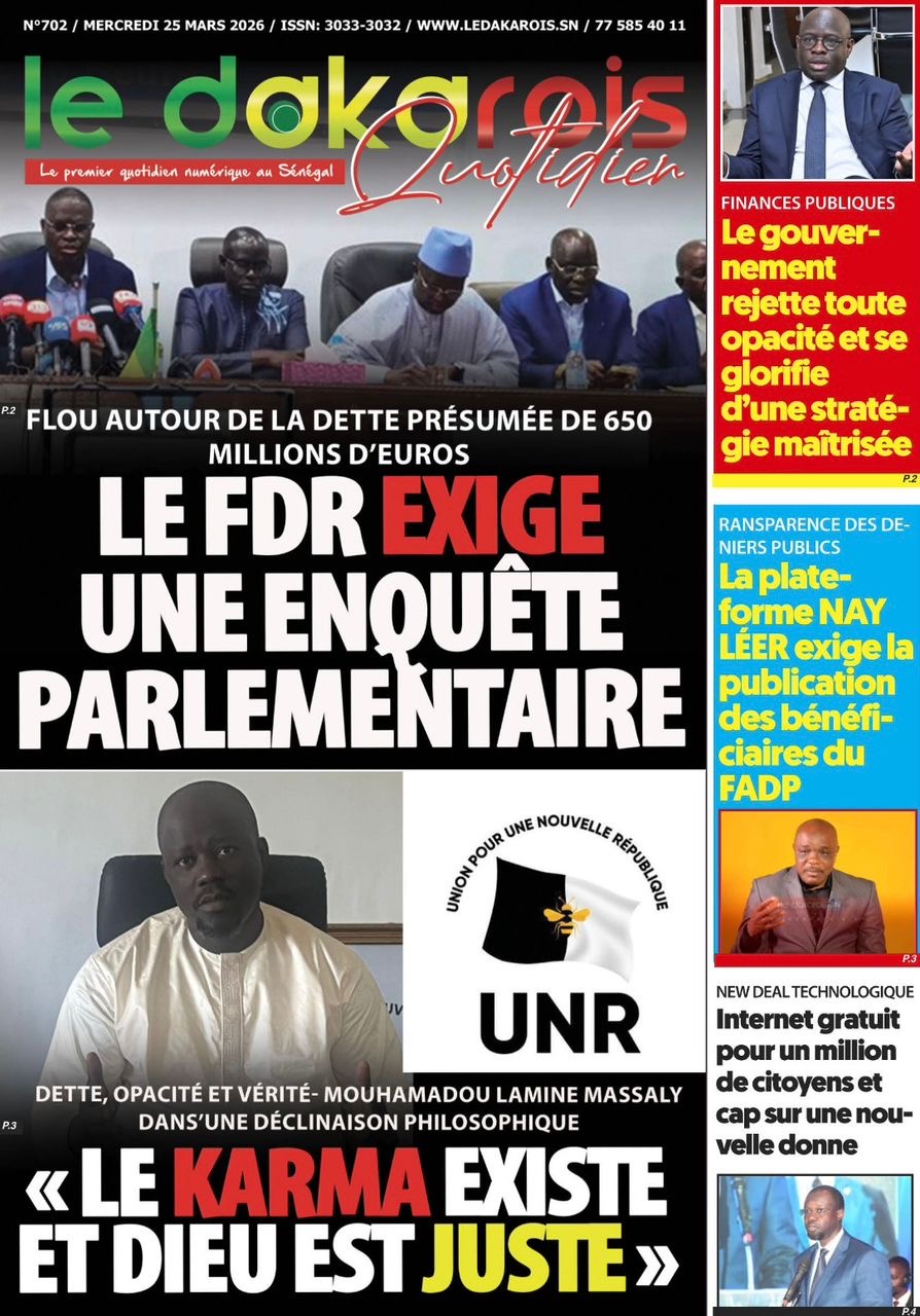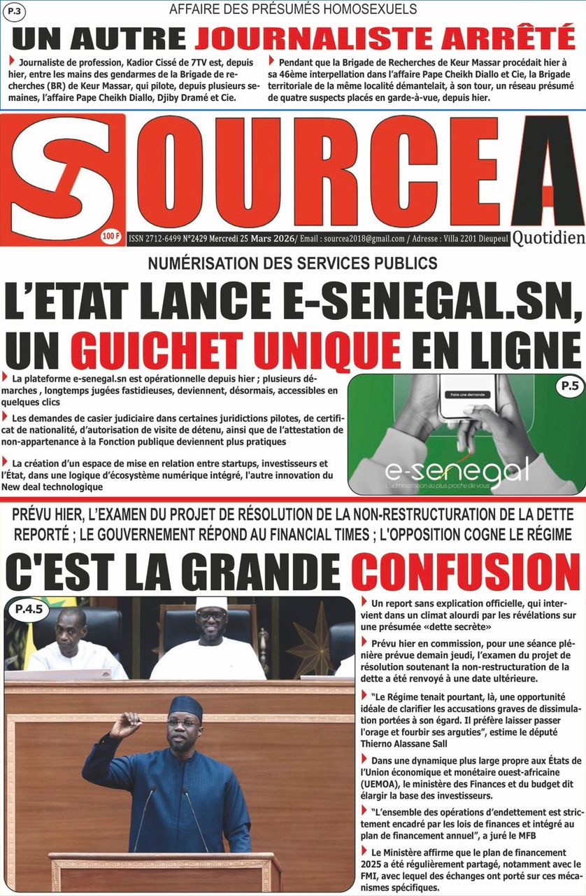 Les journaux sénégalais du mercredi 25 mars 2026 reviennent sur les précisions du ministère des Finances et du Budget sur l’affaire de dette cachée évoquée par le journal Financial Times, le voyage du Président Diomaye en Espagne et le point sur le New Deal Technologique.