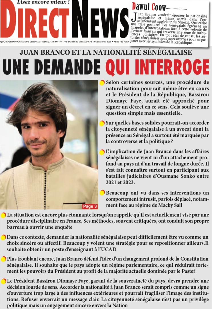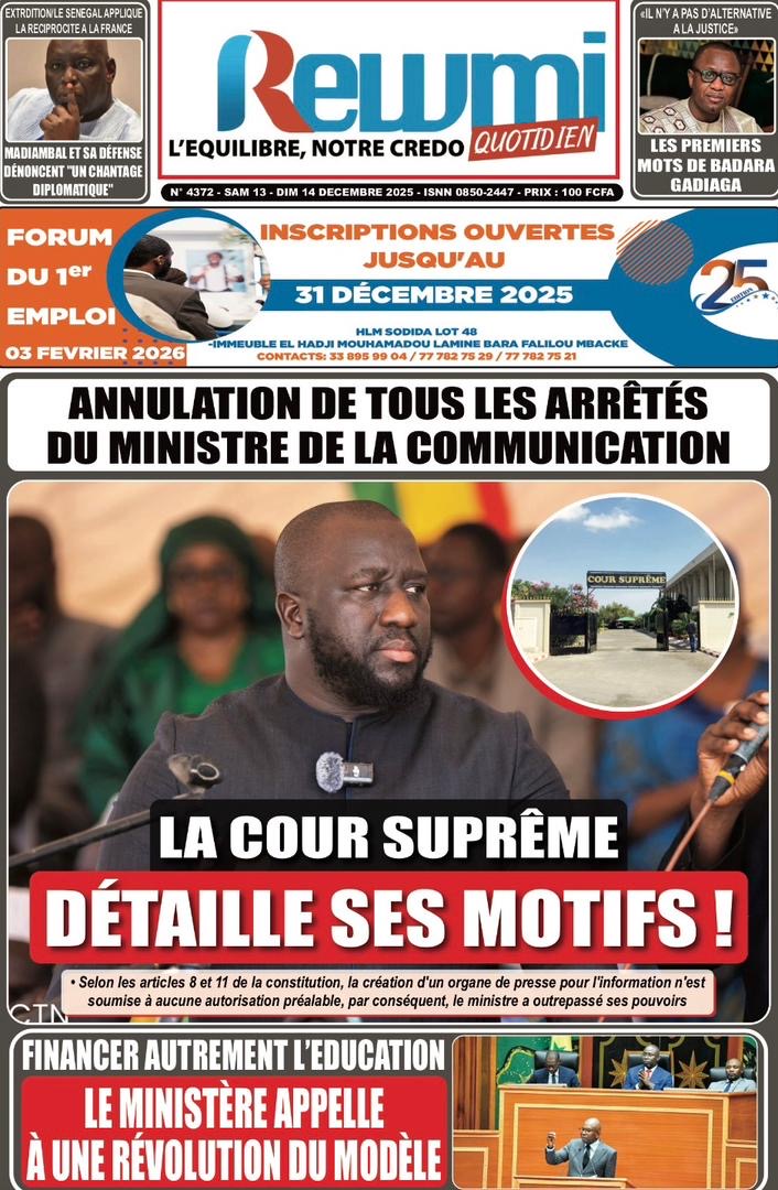 Les journaux sénégalais du samedi 13 décembre 2025