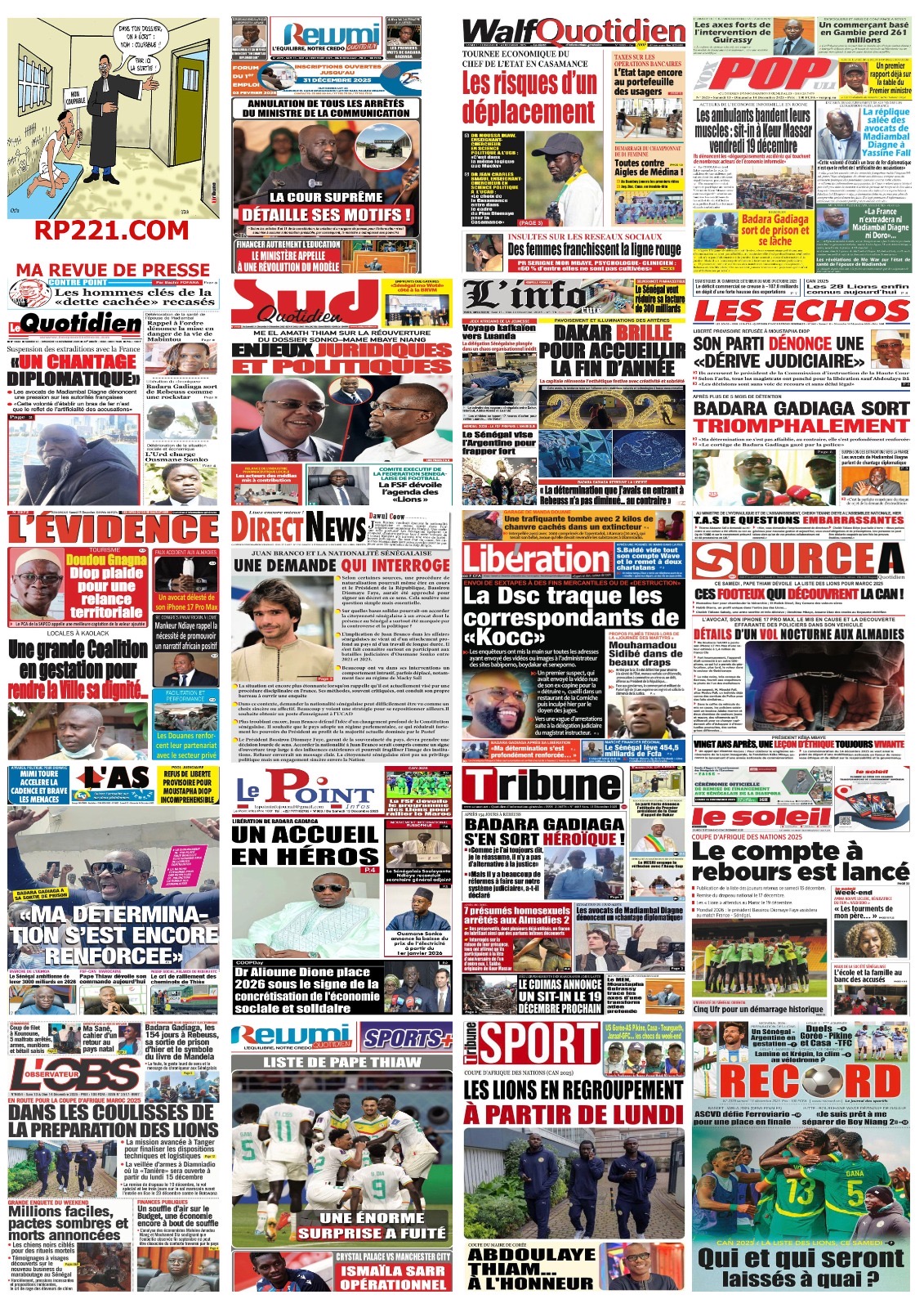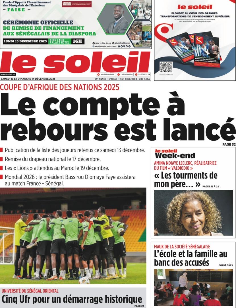 Les journaux sénégalais de ce samedi 13 décembre 2025 sont nombreux à exprimer les attentes liés à la liste des Lions pour la CAN 2025 à dévoiler par Pape Thiaw ce jour.