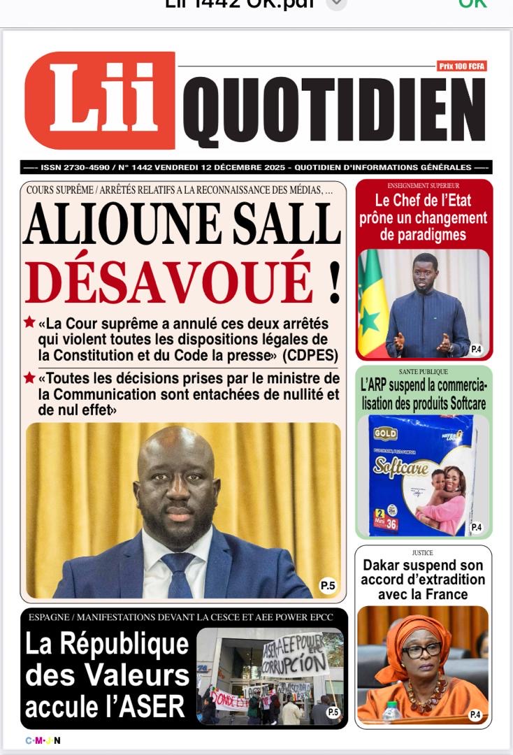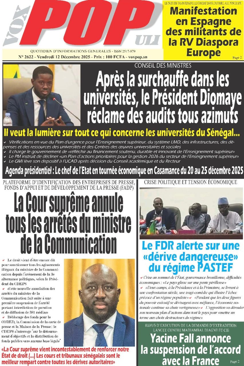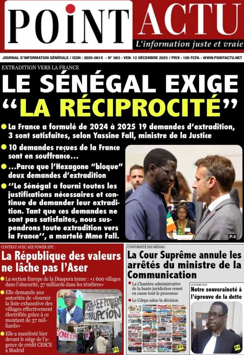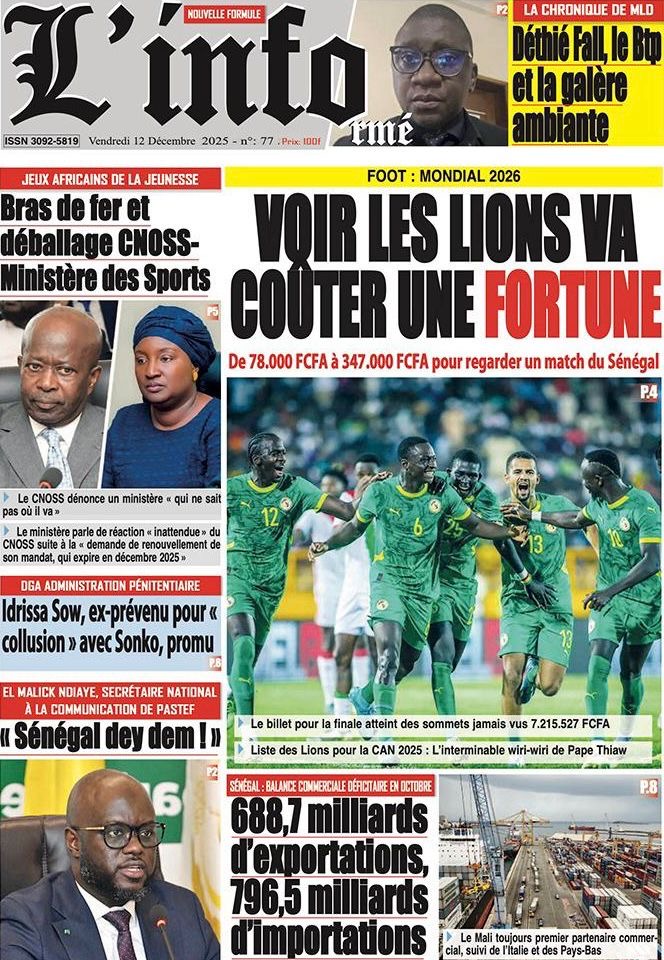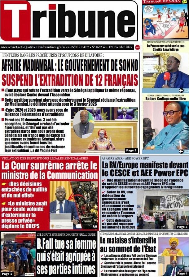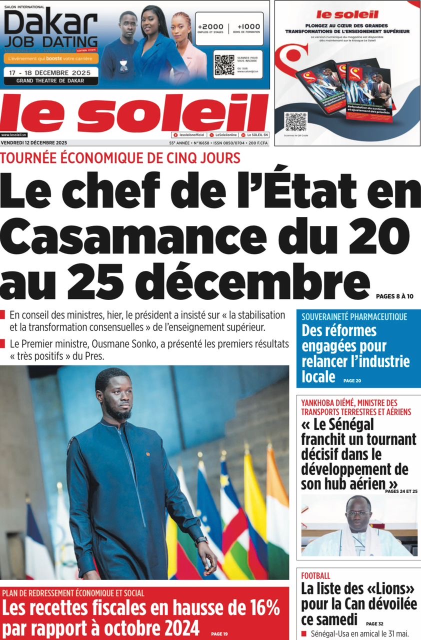 Les journaux sénégalais du vendredi 12 décembre 2025