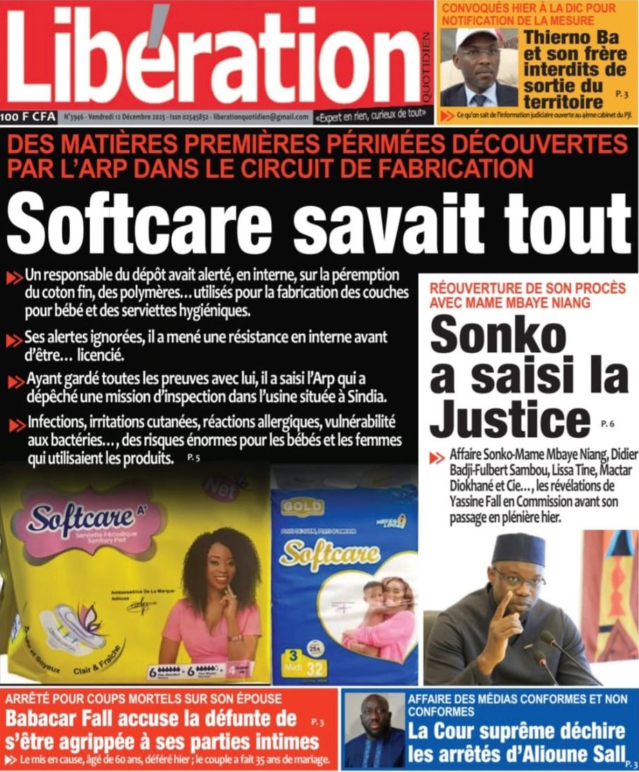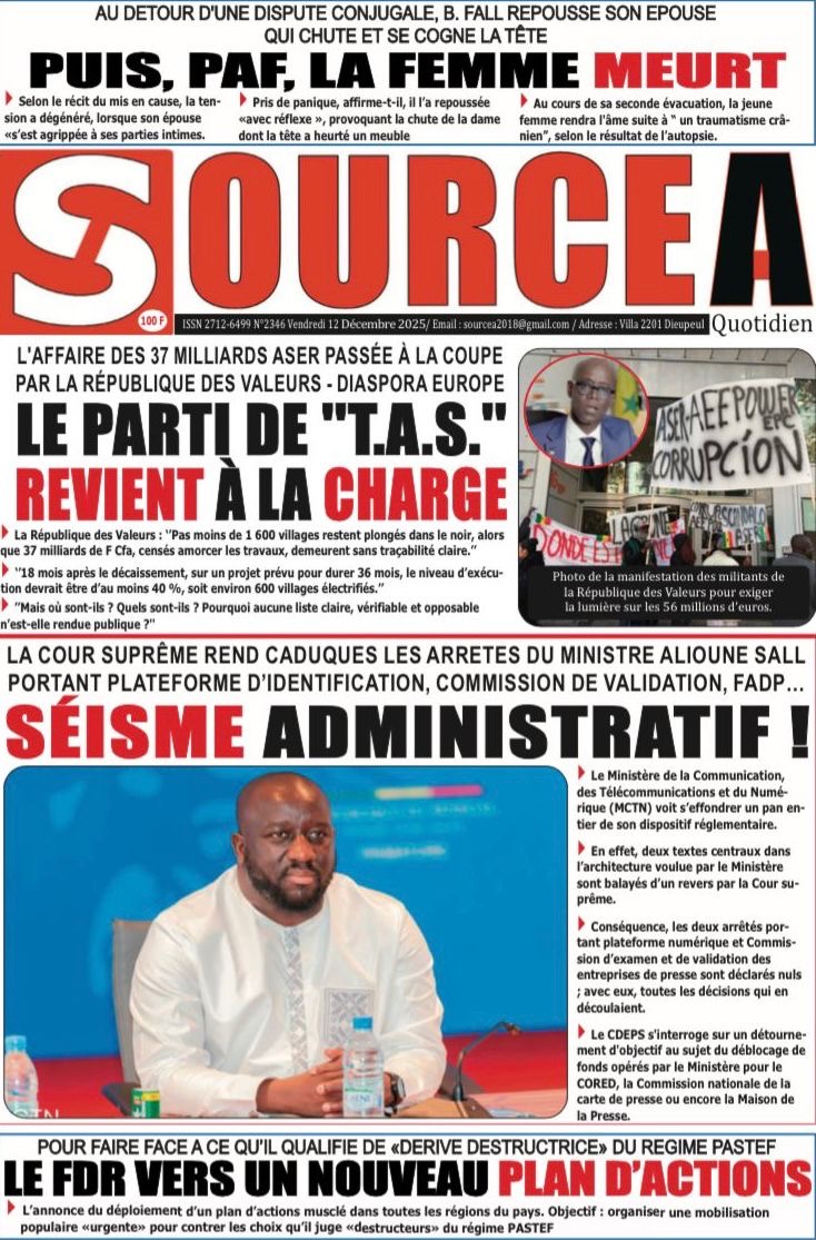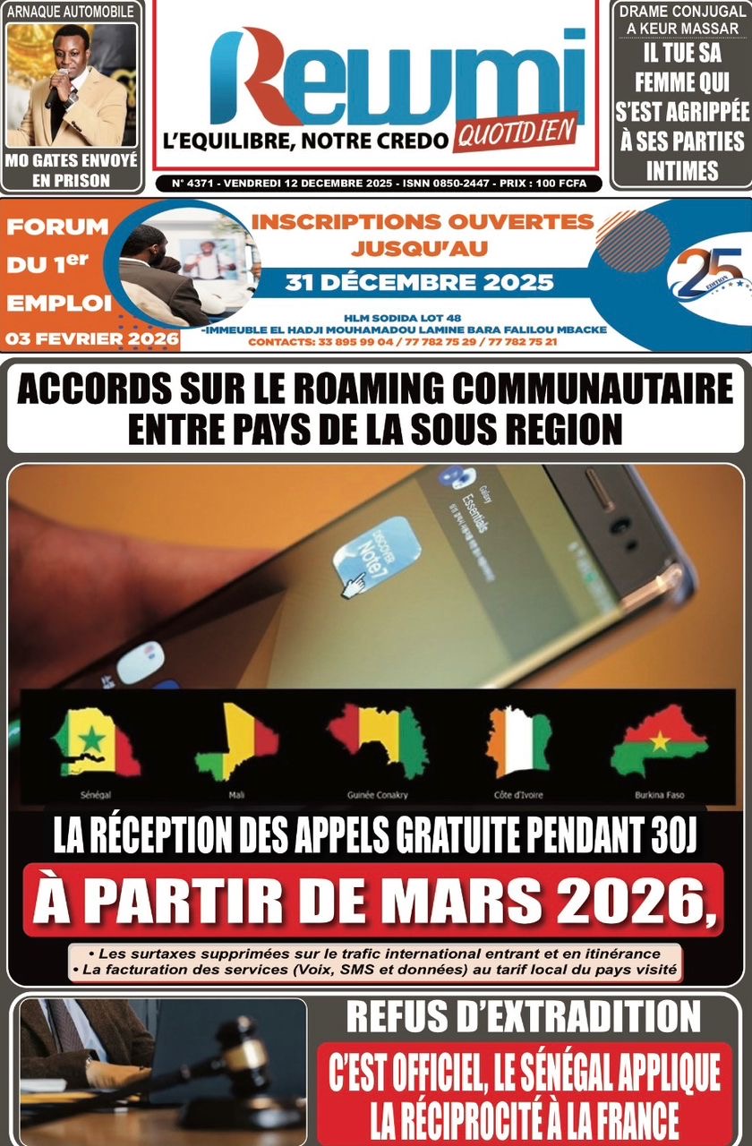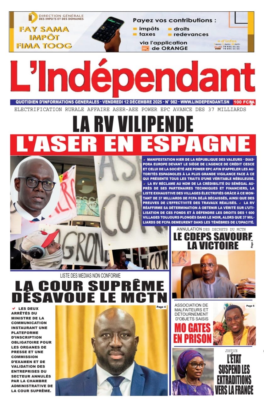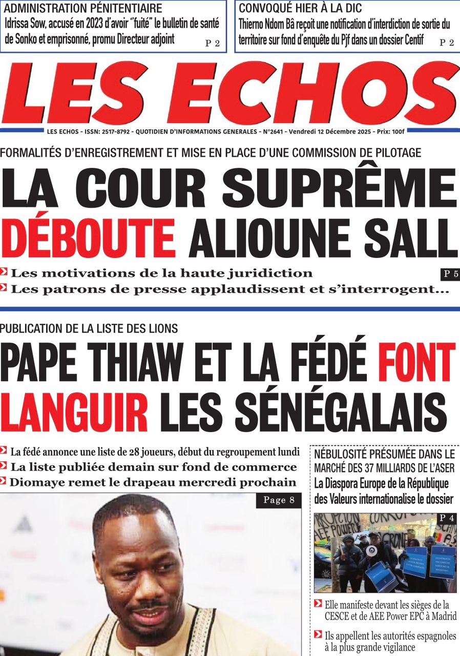 Les journaux sénégalais du vendredi 12 décembre 2025