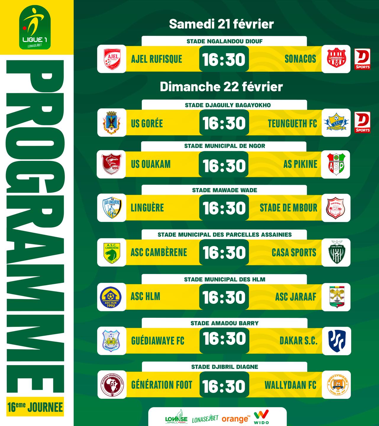AJEL de Rufisque, dauphin, reçoivent la Sonacos 11e au classement, alors que le leader de US Gorée accueille le 4e Tengueth FC pour ce qui sera le choc de cette 16e journée de la Ligue 1 sénégalaise.