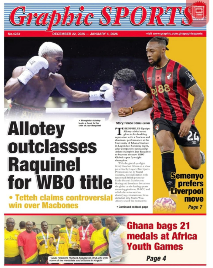 Accueil/actualites/Photos. Headlines from Ghana, this Monday, December 22, 2025 actualitesPOLITIQUERevue de presseSOCIETE Photos. Headlines from Ghana, this Monday, December 22, 2025 Ghana : Headlines from this Monday, December 22, 2025 Juloil y a 2 heures0 87 Moins d’une minute Ghana : Headlines this Monday, December 22, 2025 Read Ghana News Tags2025 actualités December 22 Ghana News headlines John Dramani Mahama journaux médias Monday Photos politique revue de presse Juloil y a 2 heures0 87 Moins d’une minute Facebook X Linkedin Tumblr Pinterest Reddit VKontakte Partager par email Imprimer