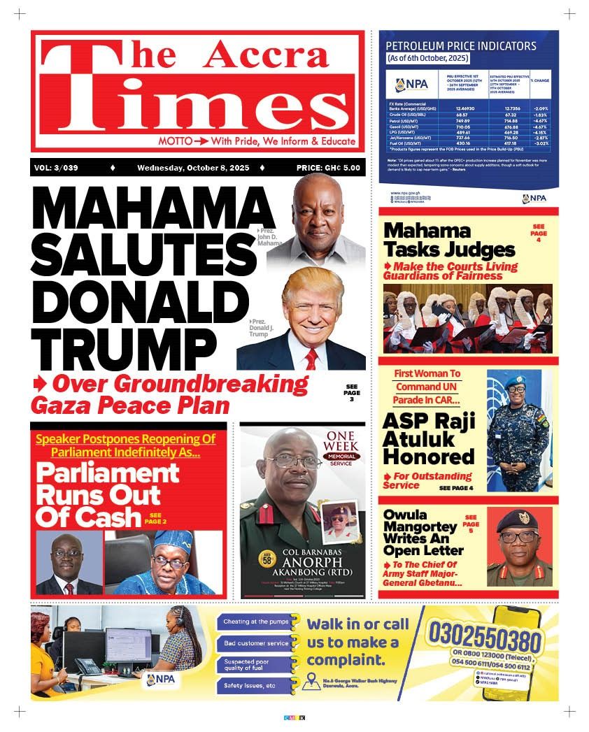 Ghana : Headlines this Wednesday, October 08, 2025 More GhanaNews