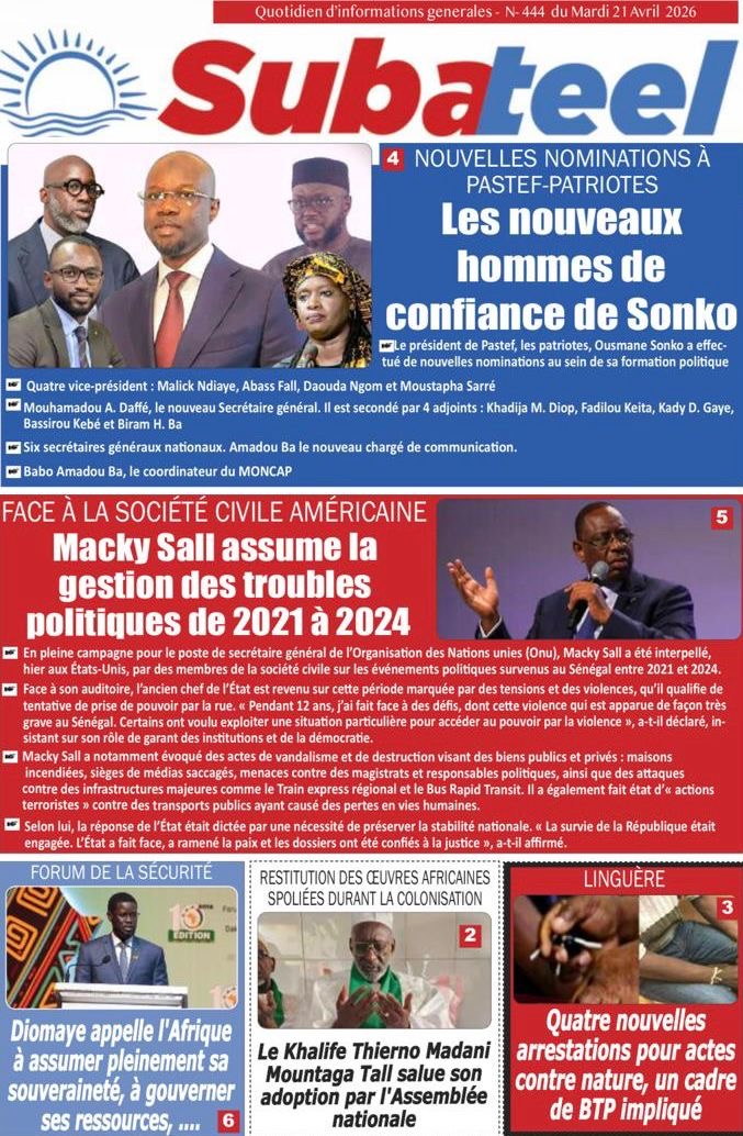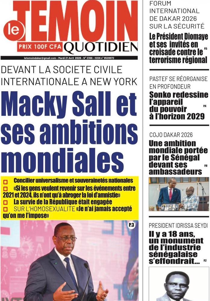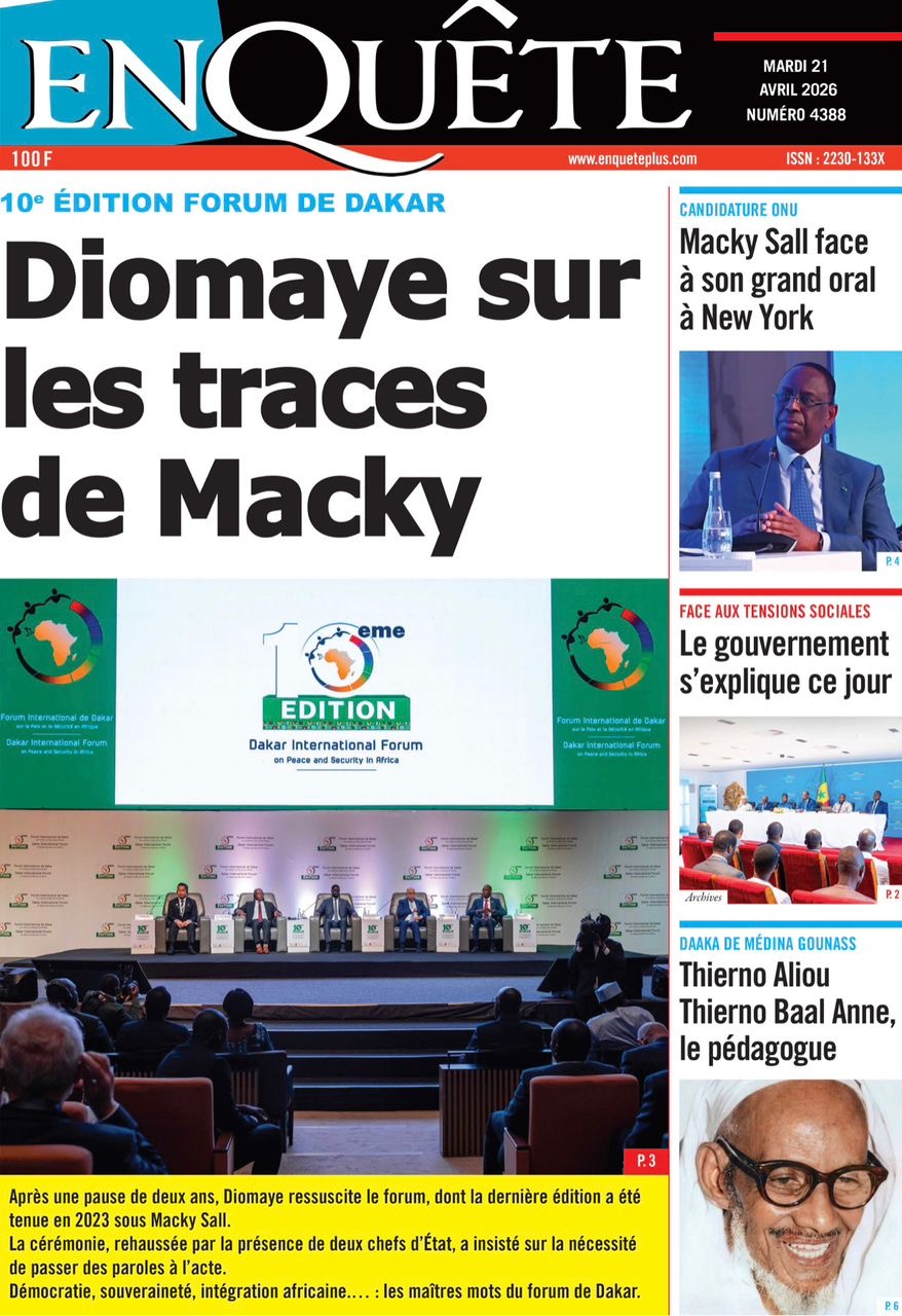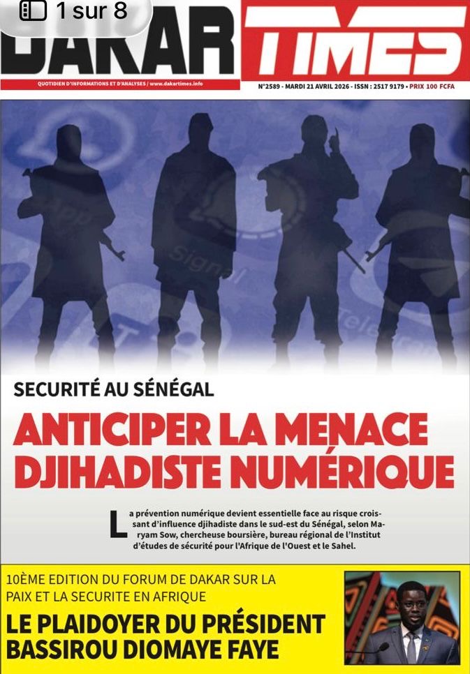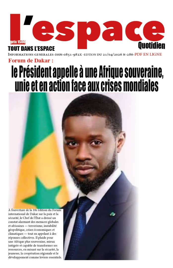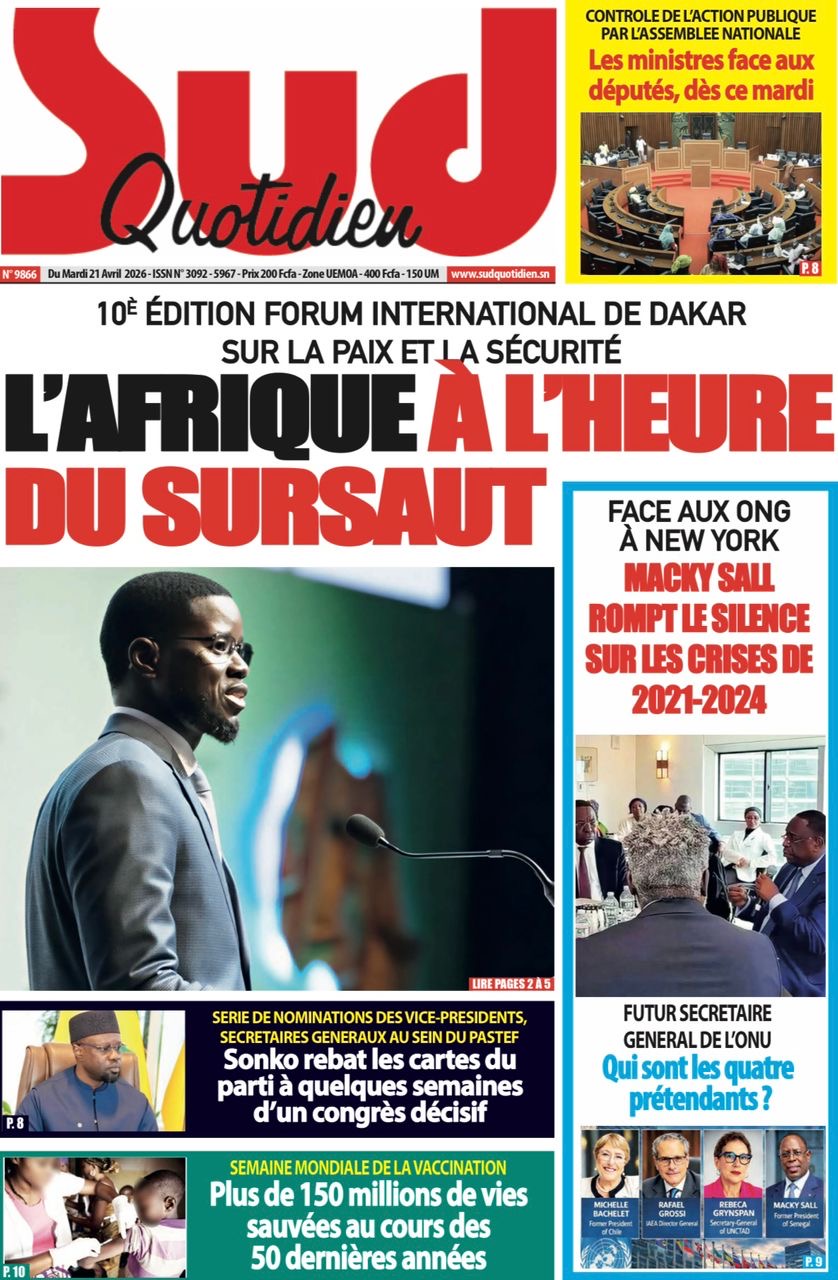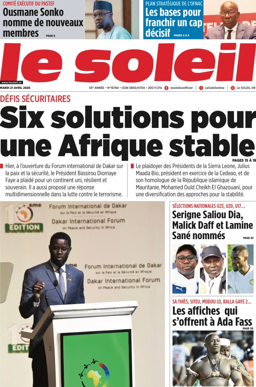 Les journaux sénégalais du mardi 21 avril 2026 reviennent sur le 10e forum Paix et Sécurité en Afrique ouverte par le Président Bassirou Diomaye Faye au CICAD. Le sujet