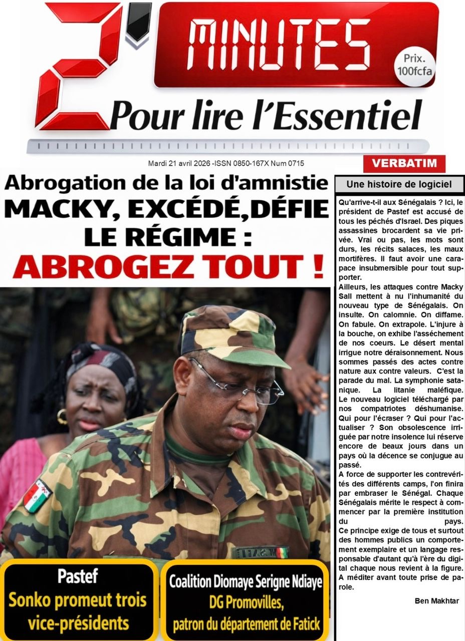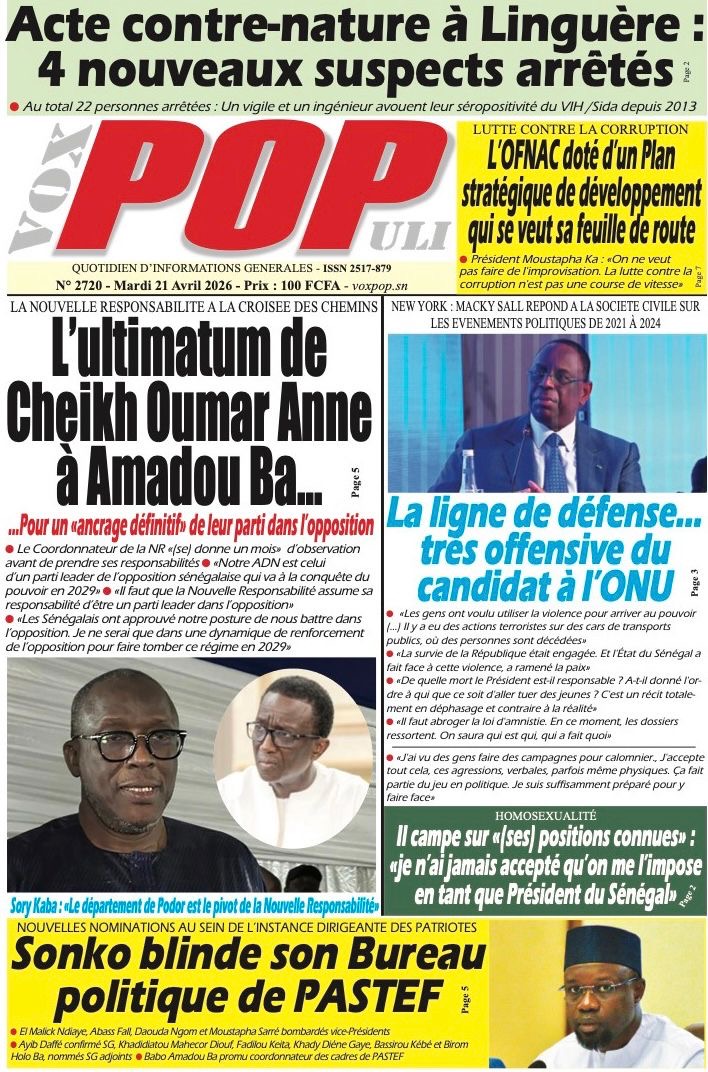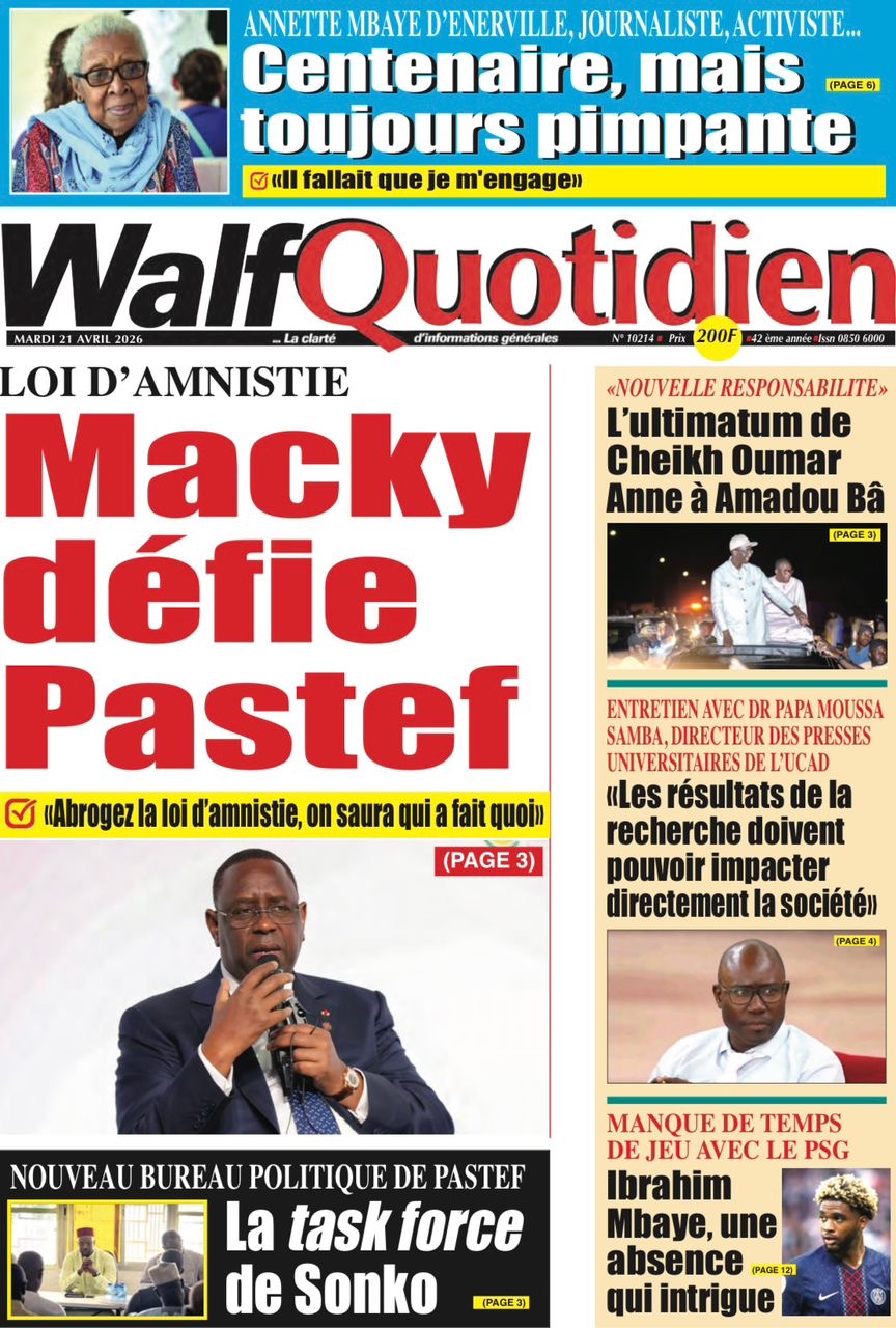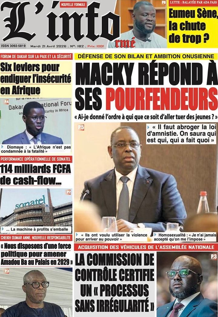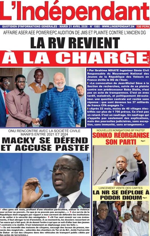 Photos. Les journaux sénégalais du mardi 21 avril 2026