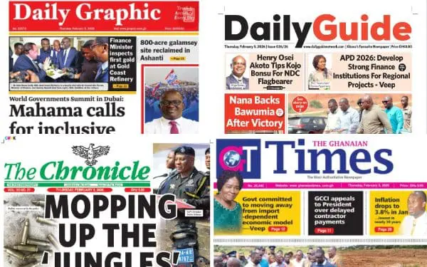 Ghana : Thursday February 5, 2026 Newspaper Headlines More Ghana News