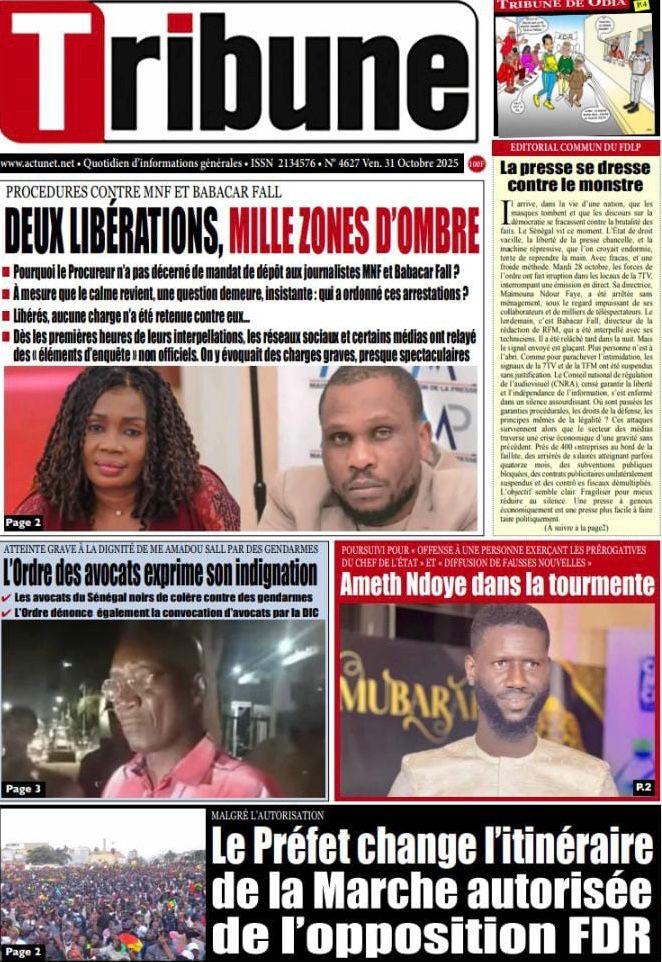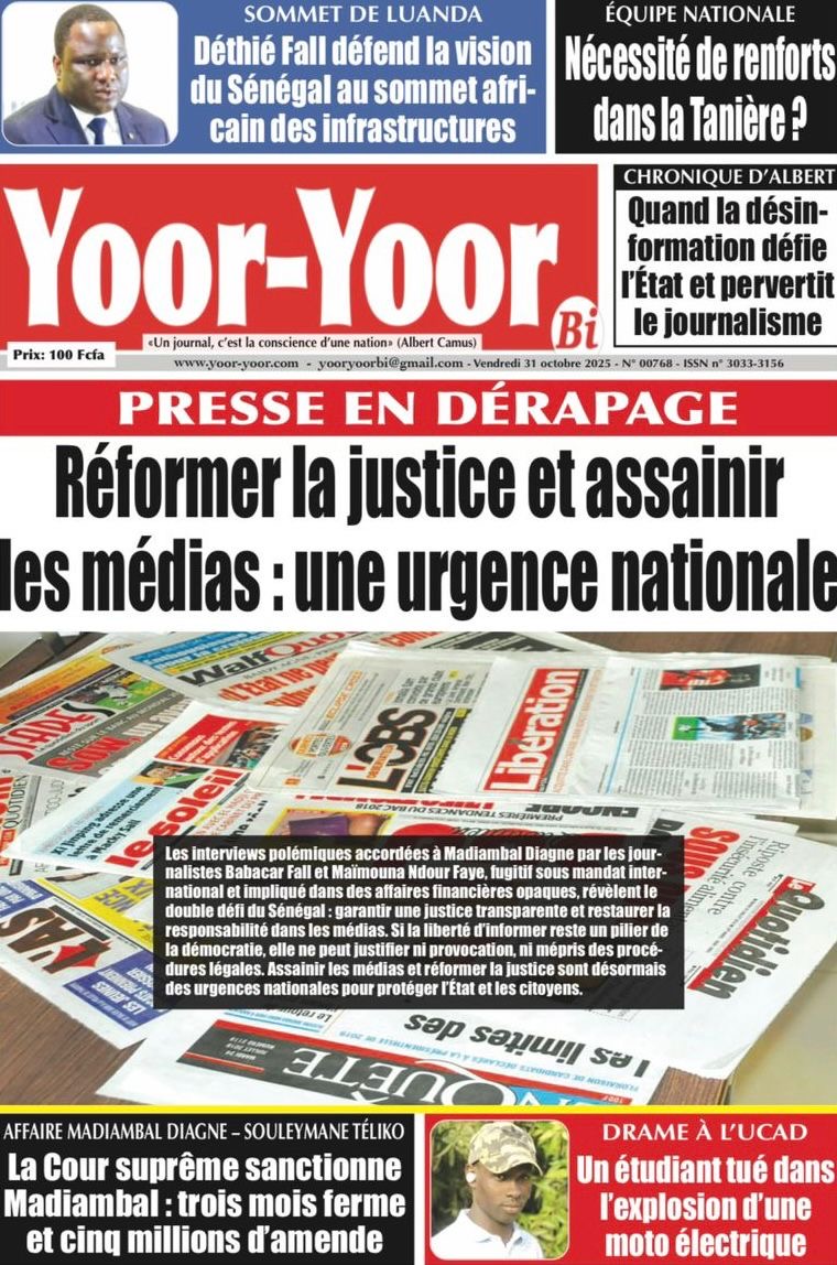 La revue de presse sénégalaise du vendredi 31 octobre 2025