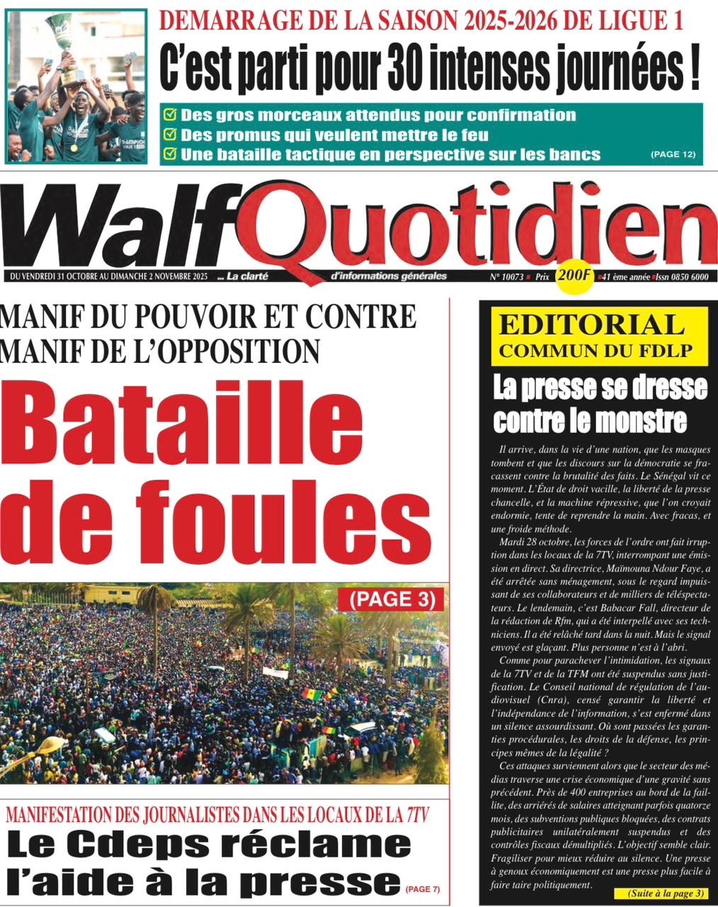 Photos. La revue de presse sénégalaise du vendredi 31 octobre 2025